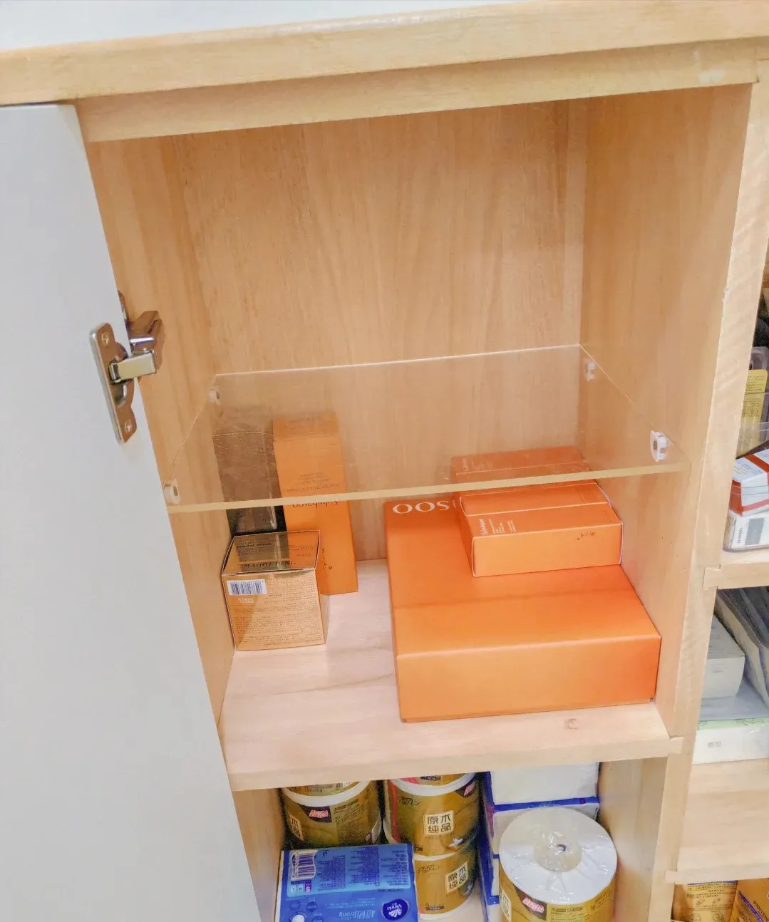 顶柜里原来一堆杂物,只能摞高,摞太满拿东西又危险。看到邻居MM&TT用几毫米厚的亚克力板加隔板托,把空间聊分成上下两层。十来块钱搞定,我跟着试了,告别了掏东西必翻车的时代。以前弯着腰,想拿下层东西得腾空上层。现在分区,一目了然,挑哪层都不用挪动其他物品。细节党必试!比那种所谓的“分隔收纳盒”灵活多了,空间能自己调。