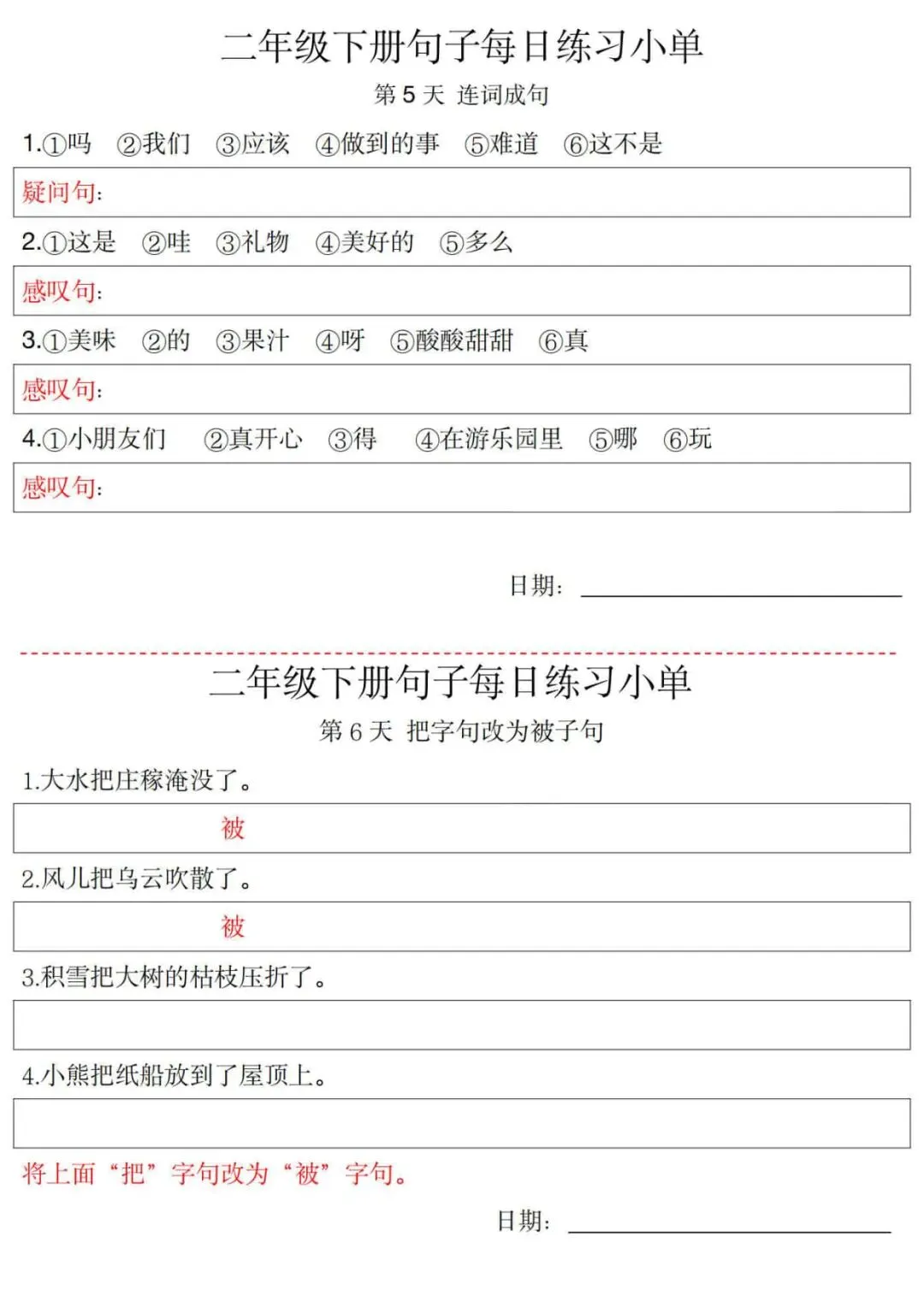 语文二年级下册《连词成句每日一练》|可免费下载打印