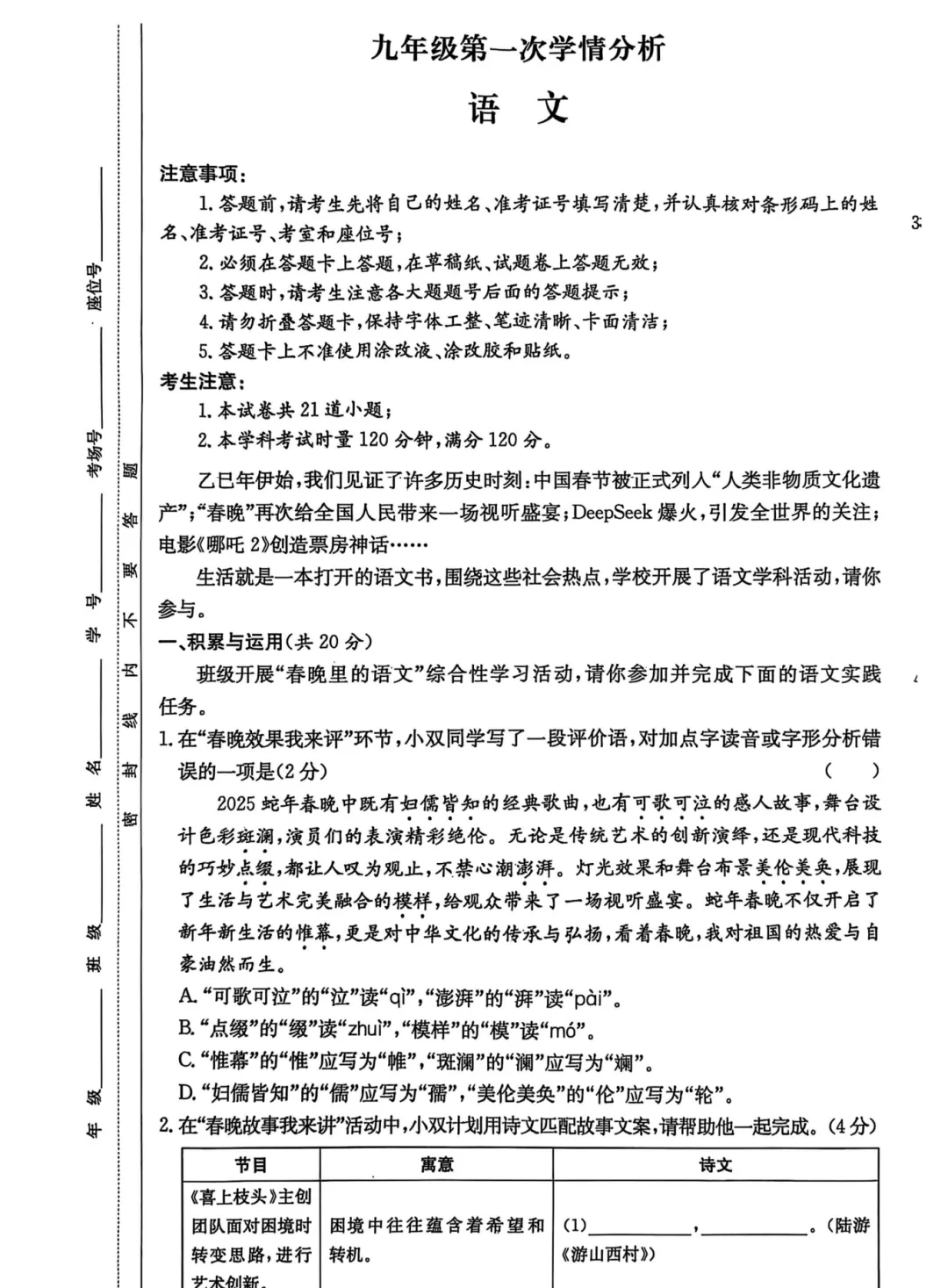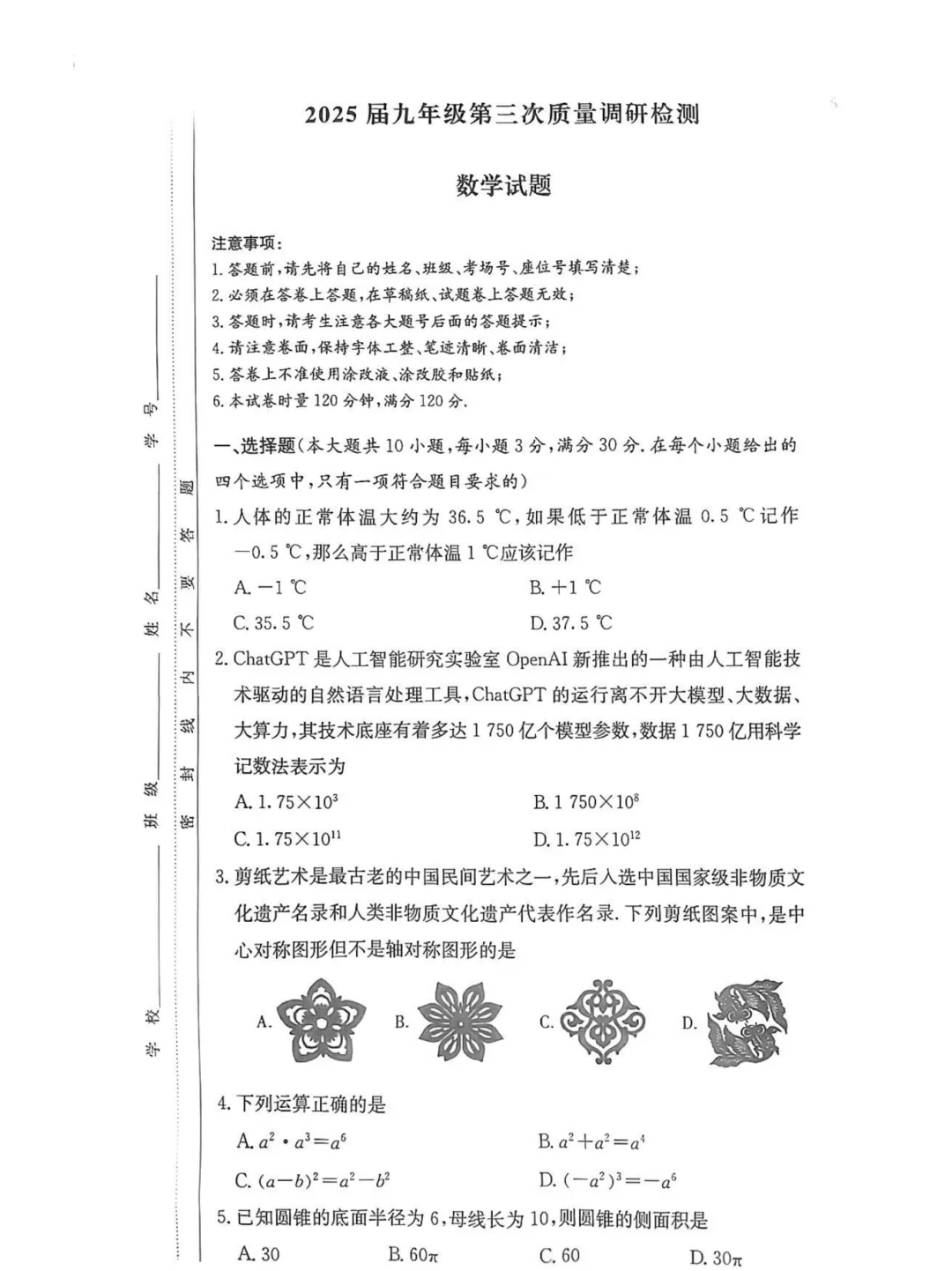 25年株洲一模卷