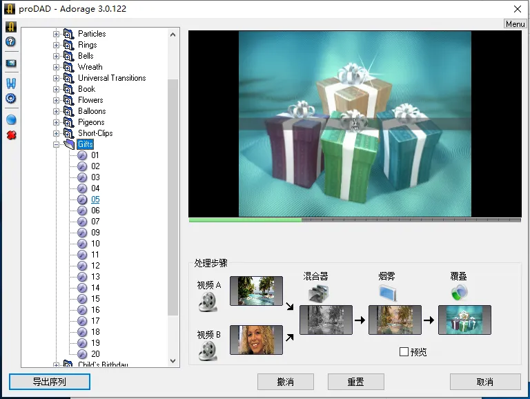 proDAD Adorage 内置经过详细预计算的 3D 物体与精心打磨的特效,既能精准烘托影视片段中的浪漫情绪,又保持了简洁易用的操作逻辑。无论是制作独特的视频拼贴,还是丰富画面层次,都能快速实现专业级效果。