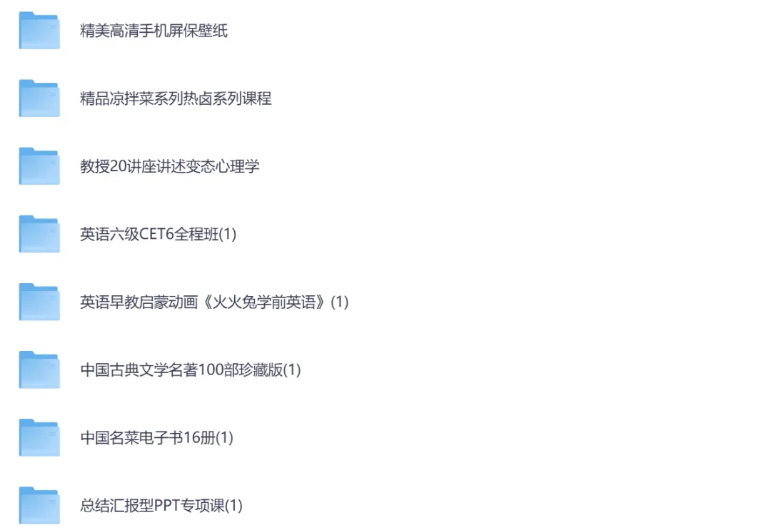 「世界记忆大师教你快速提升记忆力」 https://pan.quark.cn/s/fe92a685bbd2「119套毕业答辩PPT模板」 https://pan.quark.cn/s/9e012947e491「好听经典歌曲(合集)」 https://pan.quark.cn/s/dfd7487f1af4「钢琴纯音乐迷必备歌单166首」 https://pan.quark.cn/s/69f95c93087a「读书学习能听的音乐合集」 https://pan.quark.cn/s/35518e761104「夜店劲爆慢摇舞曲车载DJ中英文串烧合集」 https://pan.quark.cn/s/87ab542ce222「低音炮车载360首」 https://pan.quark.cn/s/d4f2b7bd61cd「韩国瑜伽老师高清课程」 https://pan.quark.cn/s/87cff933d350「儿童学生纪录片合集(读书+励志+劝学+教育)」 https://pan.quark.cn/s/874923f84784「易经类」 https://pan.quark.cn/s/74bec6216b50「周易 易经 资料合集」 https://pan.quark.cn/s/855b5d912fdb「42部纪录片(励志+教育)学生纪录片」 https://pan.quark.cn/s/597964ad3632「姓氏头像+情侣头像(合集)」 https://pan.quark.cn/s/9fed6aa8617b「毛笔书法教程」 https://pan.quark.cn/s/7652f75bee7c「马三立相声全集10CD」 https://pan.quark.cn/s/d6bbae8f05f3「中华人民共和国六十年实录1949年_2009年巨龙腾飞下_12363827.zip等多个文件」 https://pan.quark.cn/s/998f542221c9「【07】关于基金的课程(建议看看)」 https://pan.quark.cn/s/1ec7458b4307「【百家讲坛】超全合集」 https://pan.quark.cn/s/e40b945ea43d「🌹AI付费课程大合集【评分版】」 https://pan.quark.cn/s/37eb53870462「小红书运营教学(初级中级高级)」 https://pan.quark.cn/s/239e41d1b81a「相机基础入门课:摄影理论」 https://pan.quark.cn/s/b81a6927833e「小学奥数举一反三【1-6年级相关课程】」 https://pan.quark.cn/s/83e5260760cb「中国古典文学名著100部珍藏版」 https://pan.quark.cn/s/fd39fcf02eae「中国名菜电子书16册」 https://pan.quark.cn/s/4770621ac4bb「职业发展课未来10年发展指南(1)」 https://pan.quark.cn/s/ee75fad6ce33「中医珍贵古籍善本全集2000本」 https://pan.quark.cn/s/d86b45ec831e「📁历年英语四六级真题+解析合集【2015-2023(1).6】」 https://pan.quark.cn/s/16e3da799ef1「📁历年英语四六级真题+解析合集【2015-2023.6】」 https://pan.quark.cn/s/d008bdb613e5「价值几万的各种小吃教程」 https://pan.quark.cn/s/5d9efc8d6b48「麻将高手快速提升胜率教学,新手老手必修课进阶课」 https://pan.quark.cn/s/3d7fd5a31c67「朋友圈装饰素材(1)」 https://pan.quark.cn/s/20932e6969c1「书法专题【视频教程+资料】」 https://pan.quark.cn/s/9e4b40f24632「【汉字识字】最全的儿童识字教程合集(1)」 https://pan.quark.cn/s/185458e913d6「【PR教程】零基础系统学剪辑思维训练营(1)」 https://pan.quark.cn/s/7145504ce3ec「【Python教程】黑马Python爬虫教程(1)」 https://pan.quark.cn/s/b22d88dae4a7「小红书运营教学(初级中级高级)(1)」 https://pan.quark.cn/s/d0aed581575e「相机基础入门课:摄影理论(1)」 https://pan.quark.cn/s/0ddcde8d241f「小吃配方大全【详细技术教程+300个配方】」 https://pan.quark.cn/s/dc1f0cb39159「小学奥数举一反三【1-6年级相关课程】(1)」 https://pan.quark.cn/s/2ad617213f67「CAD软件+教程+课程 15天进阶」 https://pan.quark.cn/s/01bb90a76945「唱歌教程大全完整版 [强烈推荐][57GB]」 https://pan.quark.cn/s/e5d13dc58b41「付费购买的AI课程大全」 https://pan.quark.cn/s/6205bf804b94「国内旅游攻略pdf」 https://pan.quark.cn/s/2ac2959c8bb9「精美高清手机屏保壁纸」 https://pan.quark.cn/s/eb3a2d52520c「精品凉拌菜系列热卤系列课程」 https://pan.quark.cn/s/9f3225190728「教授20讲座讲述变态心理学」 https://pan.quark.cn/s/dbb4adab412b「英语六级CET6全程班(1)」 https://pan.quark.cn/s/4909a1504fad「英语早教启蒙动画《火火兔学前英语》(1)」 https://pan.quark.cn/s/ecec9888f440「中国古典文学名著100部珍藏版(1)」 https://pan.quark.cn/s/423f3c1a1ce4「中国名菜电子书16册(1)」 https://pan.quark.cn/s/3ac2953777ad「总结汇报型PPT专项课(1)」 https://pan.quark.cn/s/0fa89cda812e「家庭紧急急救 视频讲解」 https://pan.quark.cn/s/10f8ae837b50「吉他系统教程 小白到大神」 https://pan.quark.cn/s/22a532520d62「精选夜店酒吧嗨曲榜100首」 https://pan.quark.cn/s/d96862354b25