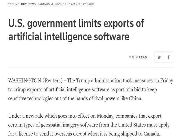 同时这个措施也要求,应用于智能化传感器、无人机、卫星和其他自动化设备的目标识别软件(无论民用或军用)都在限制范围之内。换言之,像GIS、自动驾驶、语音识别和无人机等依赖AI人工智能(Artificial Intelligence)技术的非美国企业,首当其冲受到影响。