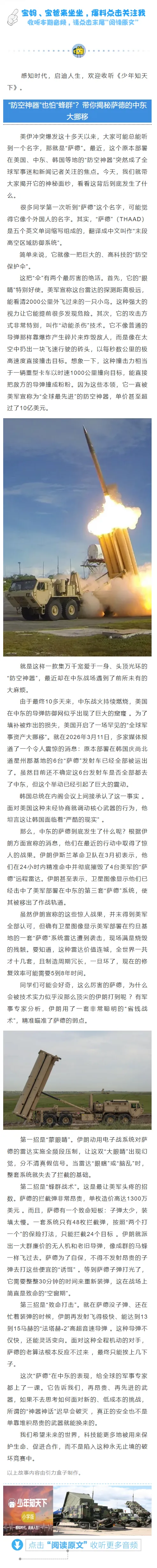 少年知天下丨“防空神器”也怕“蜂群”?带你揭秘萨德的中东大挪移丨小学版