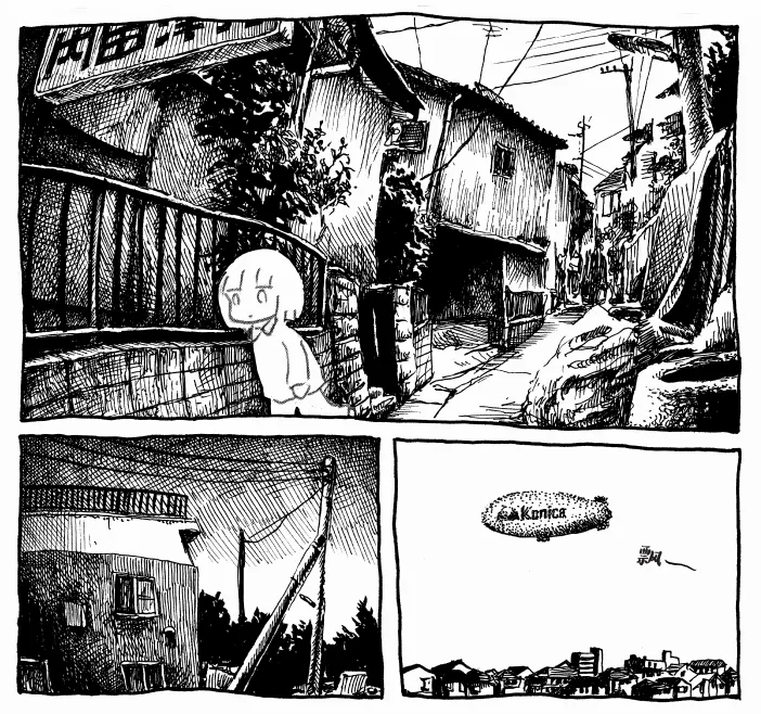 猫咪星:是的。拓植义春创作的六七十年代是距离我们比较遥远的一段历史。他的私漫画能够看到他的痛苦,这种痛苦既跟个人有关,也和时代有关。这就引出一个问题——活在当下的漫画家,如何用私漫画展现“私”的一面?我认为没有比panpanya做得更好的漫画家了。panpanya的路上观察是把自己的记忆与此地相融合,用独特的领略城市风光的方式,感受着时间和空间。