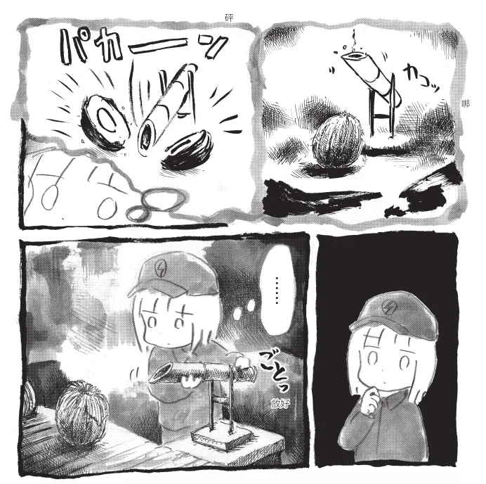 焦阳:对,这篇还有一条支线就是小女孩向老师求证椰子发电的原理,她的老师在不知道真相的情况下进行了很认真的思考。提出椰子或许能够提炼出生制酒精作为燃料,又或者像柠檬电池一样可以利用金属的化学变化发电的方法。panpanya真的很擅长把本来就很离谱的一件事情转换到另外一个维度继续异想天开。