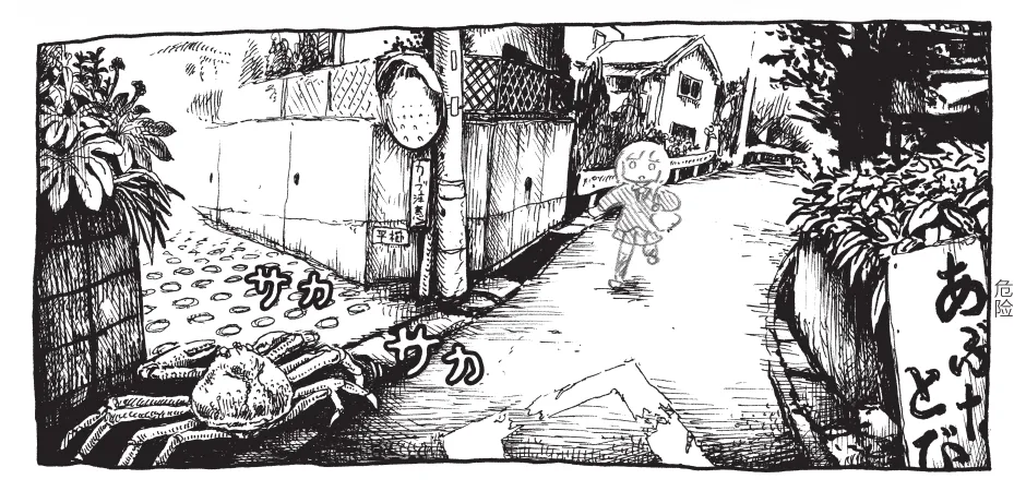 萧勇:再比如《螃蟹的邀请》。故事很简单,主角在路上看到一只螃蟹,想追上去吃了它。螃蟹一路跑,最后卡在下水道口,被水产店店员抓回去了,说这是店里跑丢的商品。这就有意思了,螃蟹认家,逃跑了还往卖自己的地方跑。这篇很短,讲出来就没味道了,但在阅读过程中你跟着小女孩一起追螃蟹,走过不常走的路,翻过小山坡又跑下楼梯,最后发现这之中的因果关系是错乱的——螃蟹跑出来又引人回店里,是为了让人买它吗?书名《螃蟹的邀请》,就给了一个错乱的想象空间。