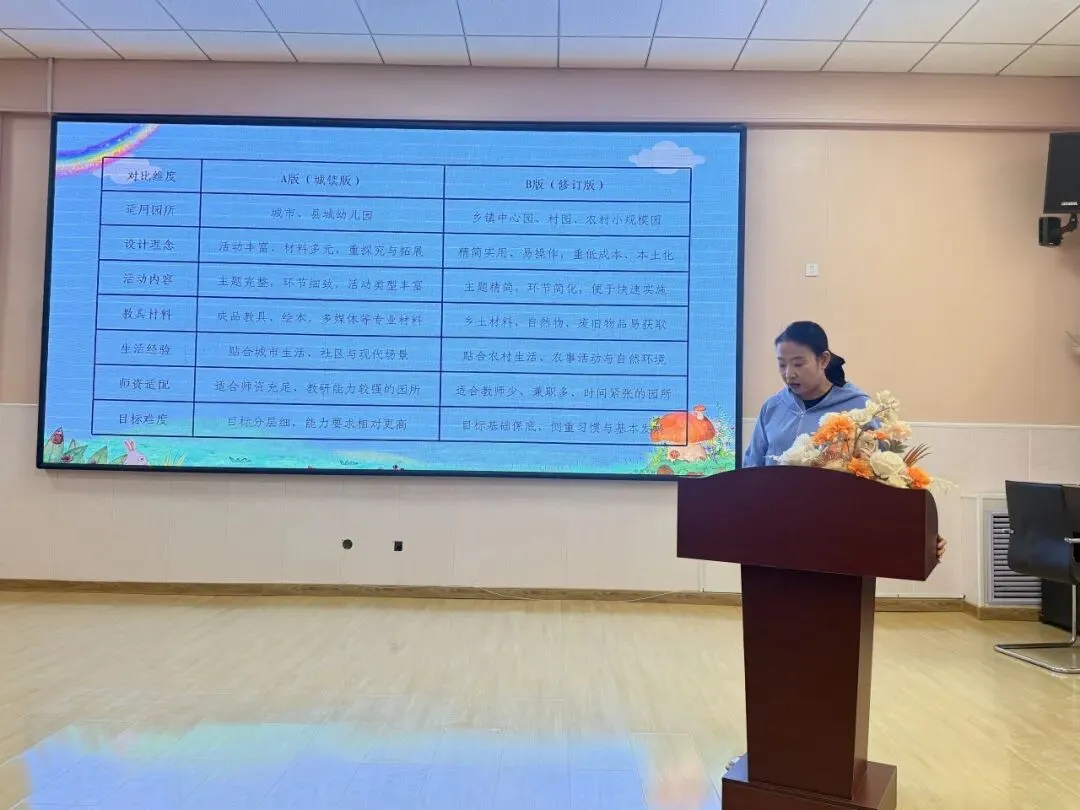 研读结束后,全园教师集中进行汇报交流,小班组立足幼儿年龄特点,聚焦生活习惯与游戏化活动,细化目标要求,让教育自然融入一日生活;中班组团队凝心聚力,深耕课程资源核心,聚焦习惯养成与能力提升,深化游戏化活动;大班组紧扣幼儿发展目标,聚焦能力培养与经验提升,优化活动实施路径,为幼儿全面发展夯实基础。