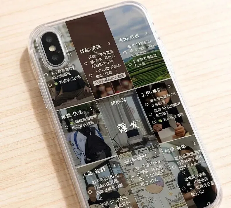 把目标九宫格打印出来,贴在手机壳的背面,也可以根据图片专门定制一个手机壳,或者你买个透明的手机壳,垫在手机壳的背面,这样只要把手机扣下来的时候,你就能看到,并且收到一个提醒:忙了那么多别人的事,也该为自己做点什么了