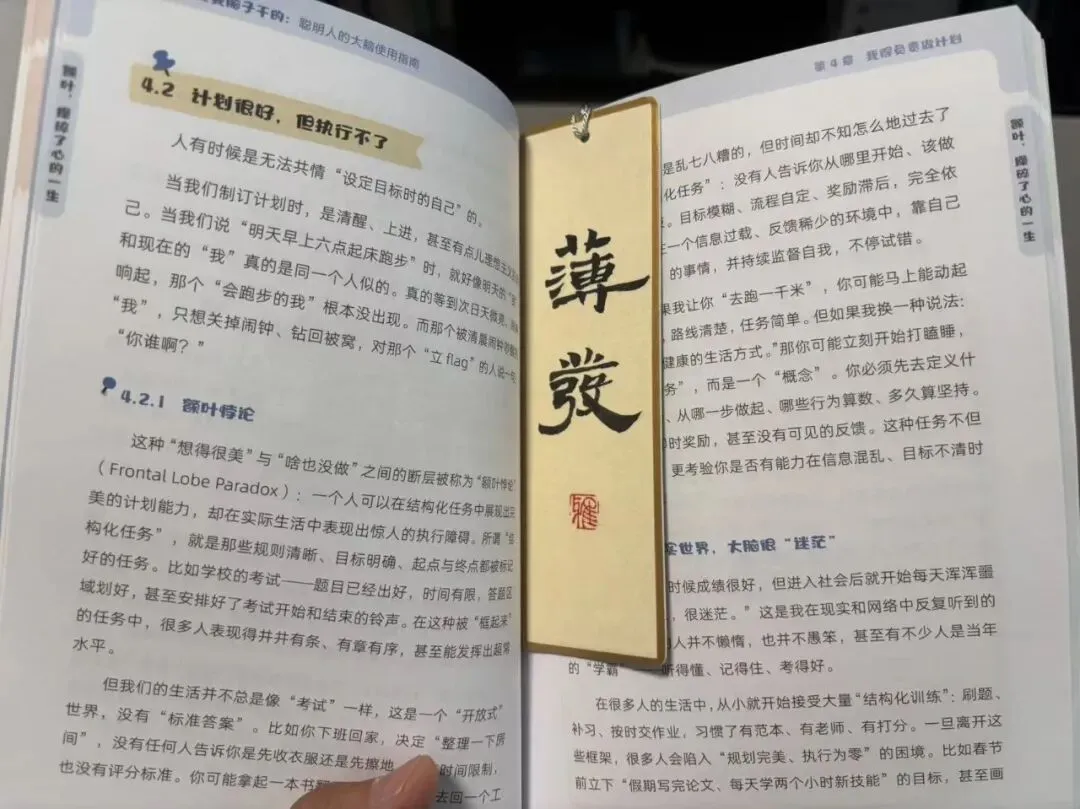 于是我专门请书法家朋友帮我写了书签,我看书的时候就把书签夹进去,每次打开书,看到书签,都在提醒我:书是为我想活出的那个状态服务的
