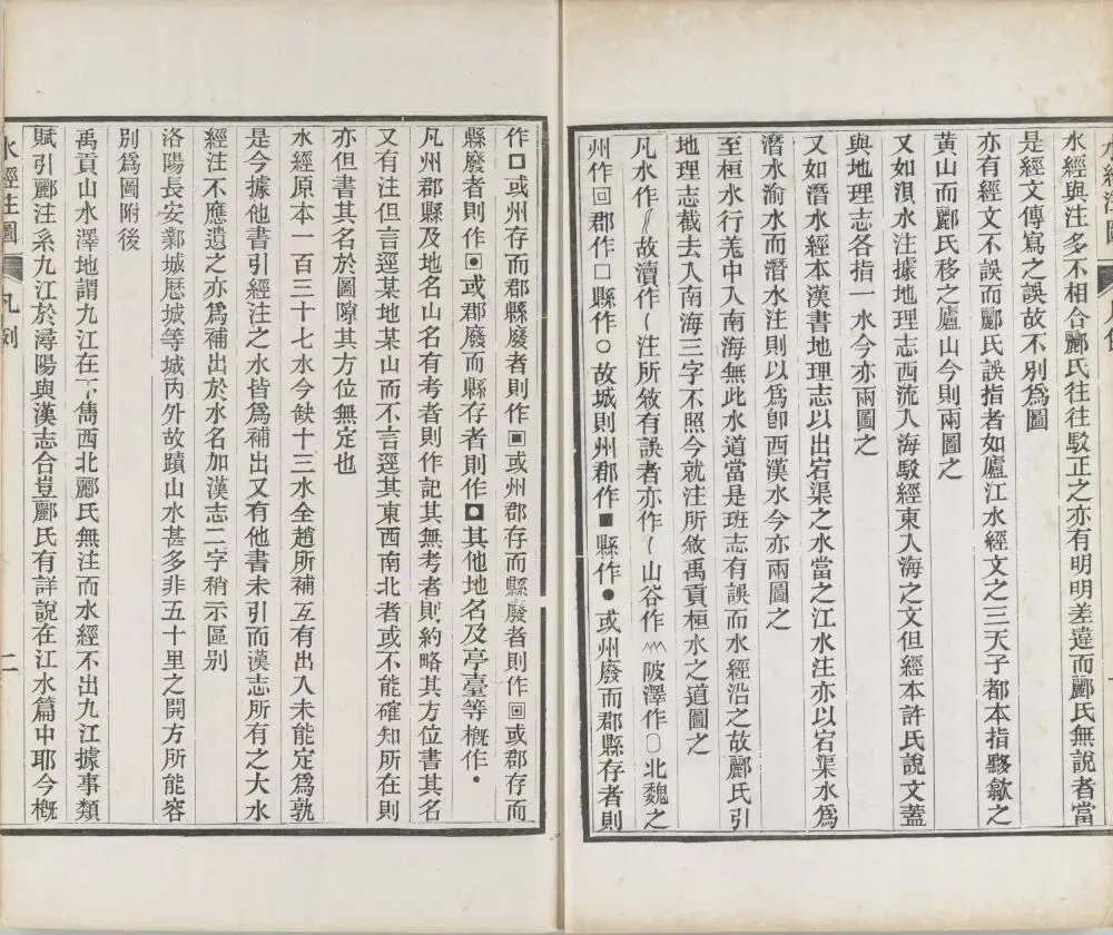 杨守敬出使日本期间,搜集大量流失海外的汉籍舆图,融合中日地理资料,以胡林翼《大清一统舆图》为底图,结合《水经注疏》考证成果,与熊会贞逐水绘图标注,终成《水经注图》。