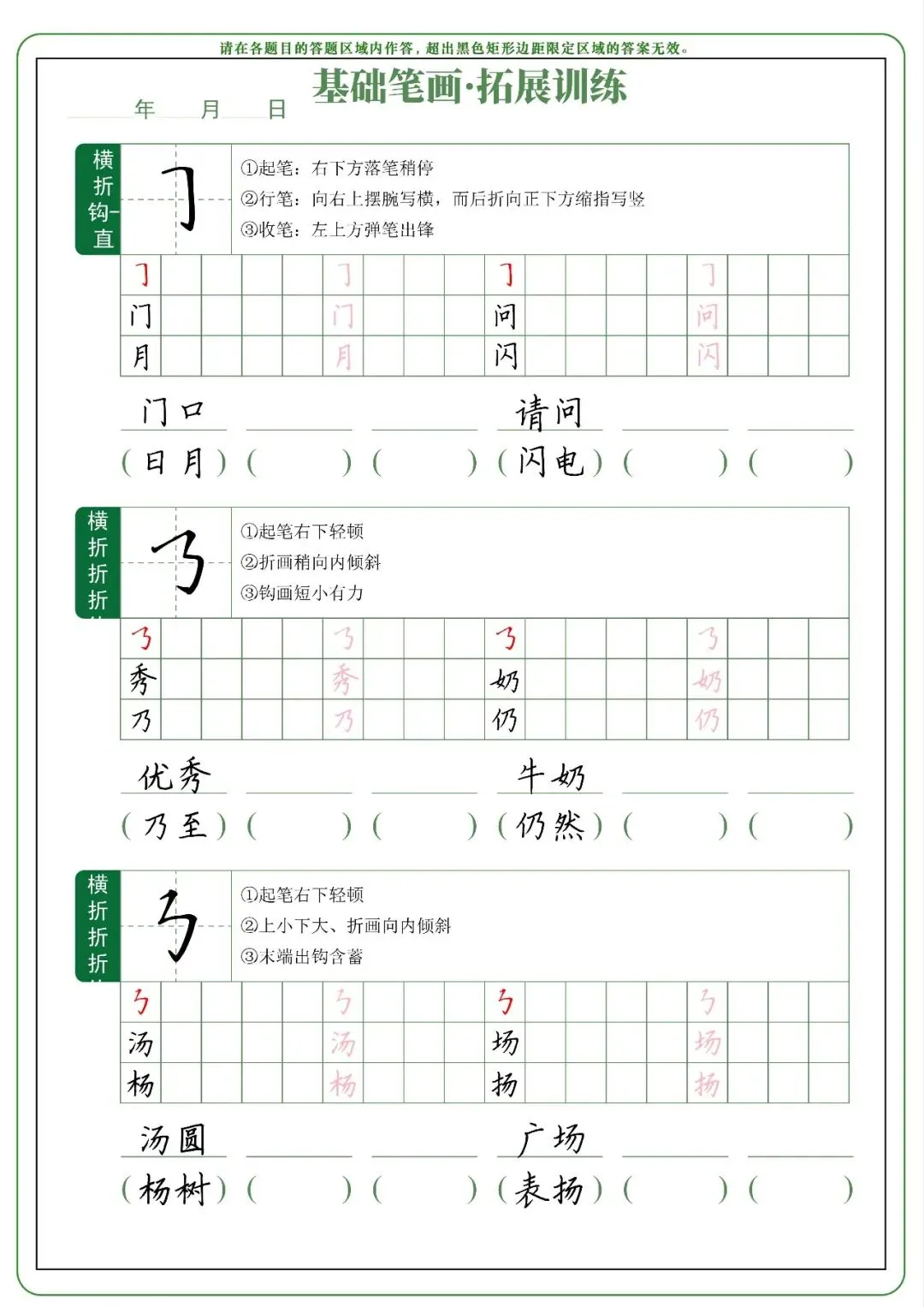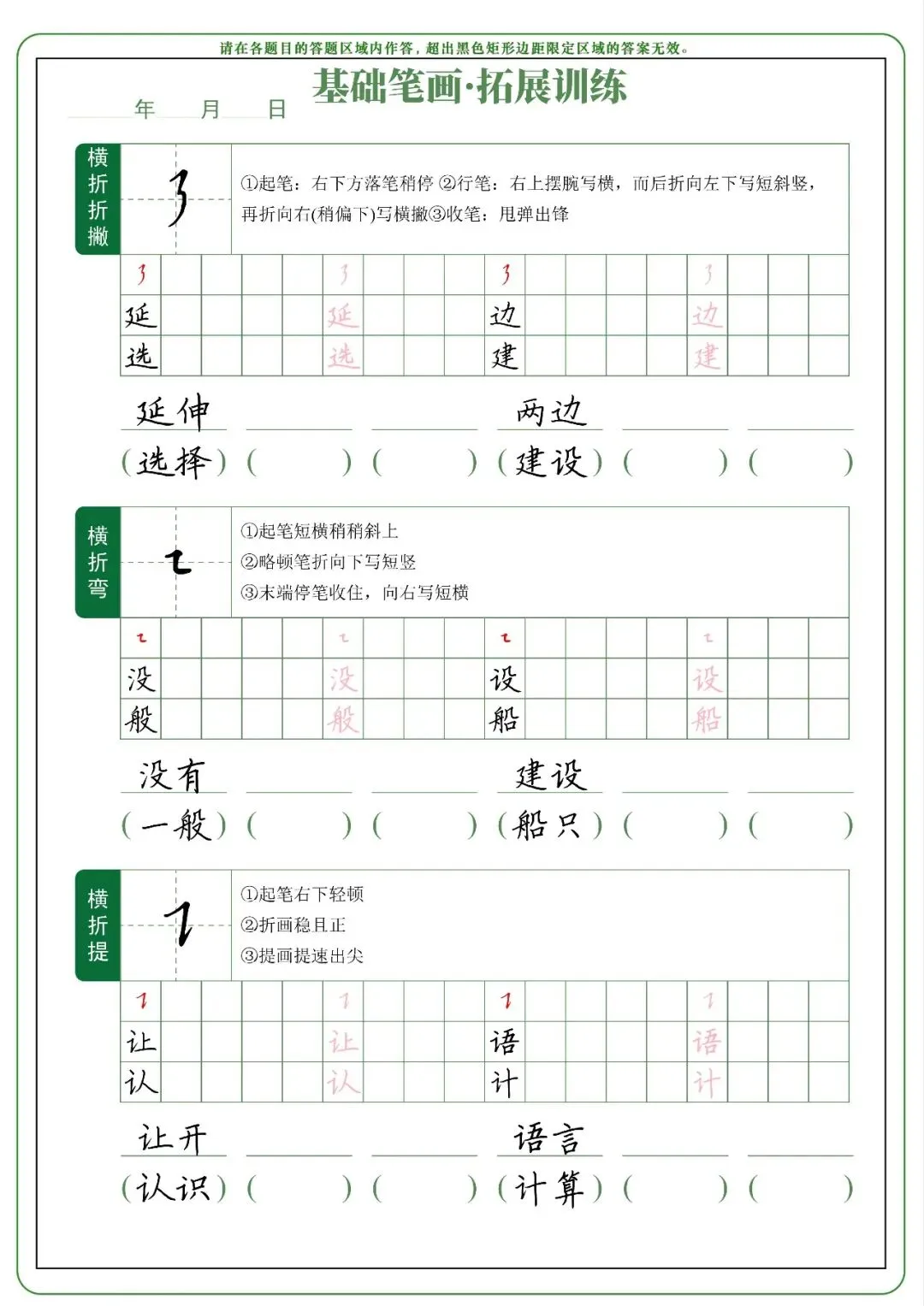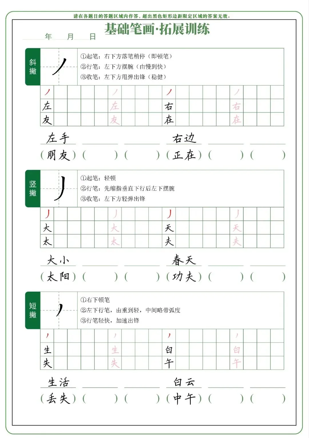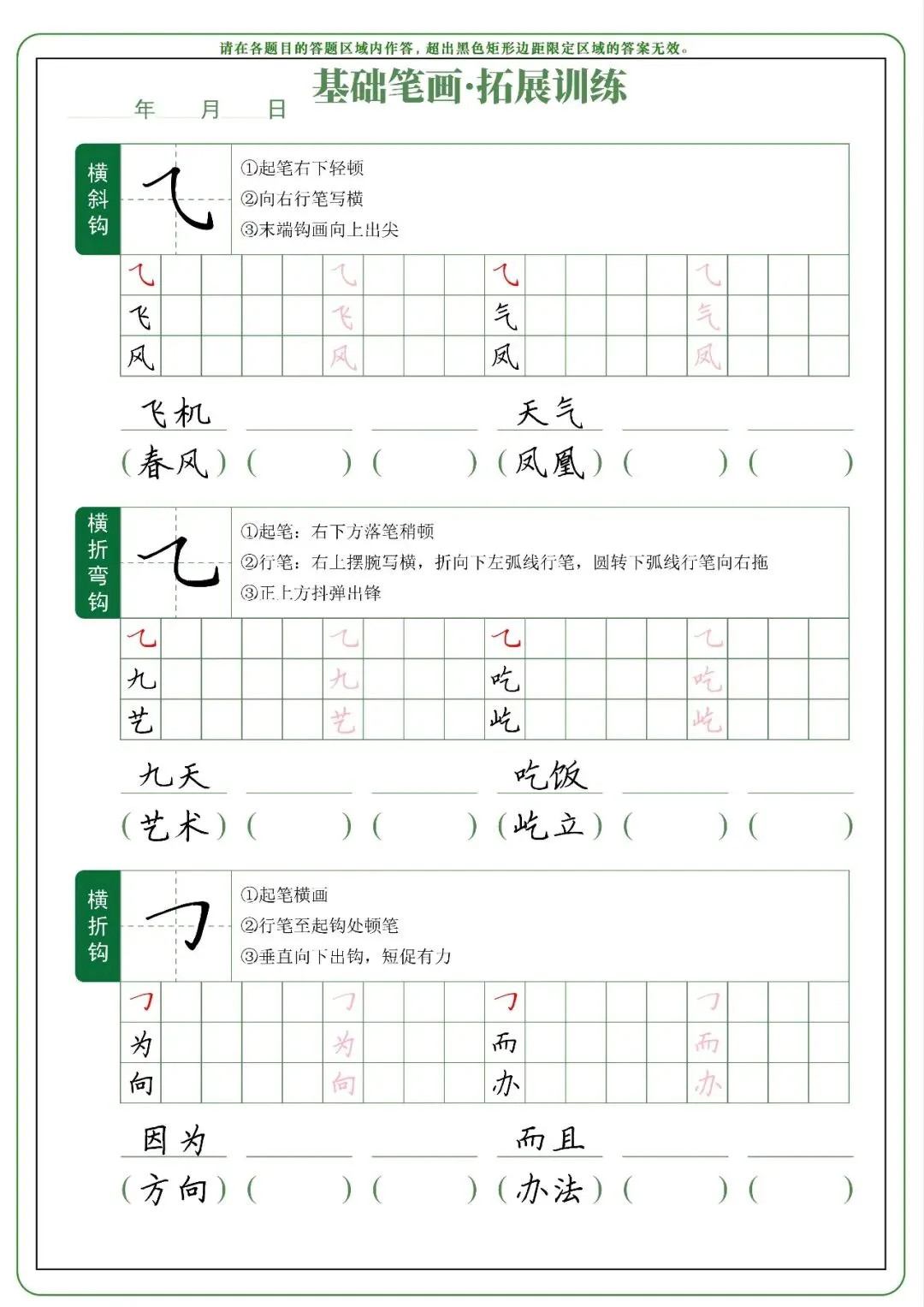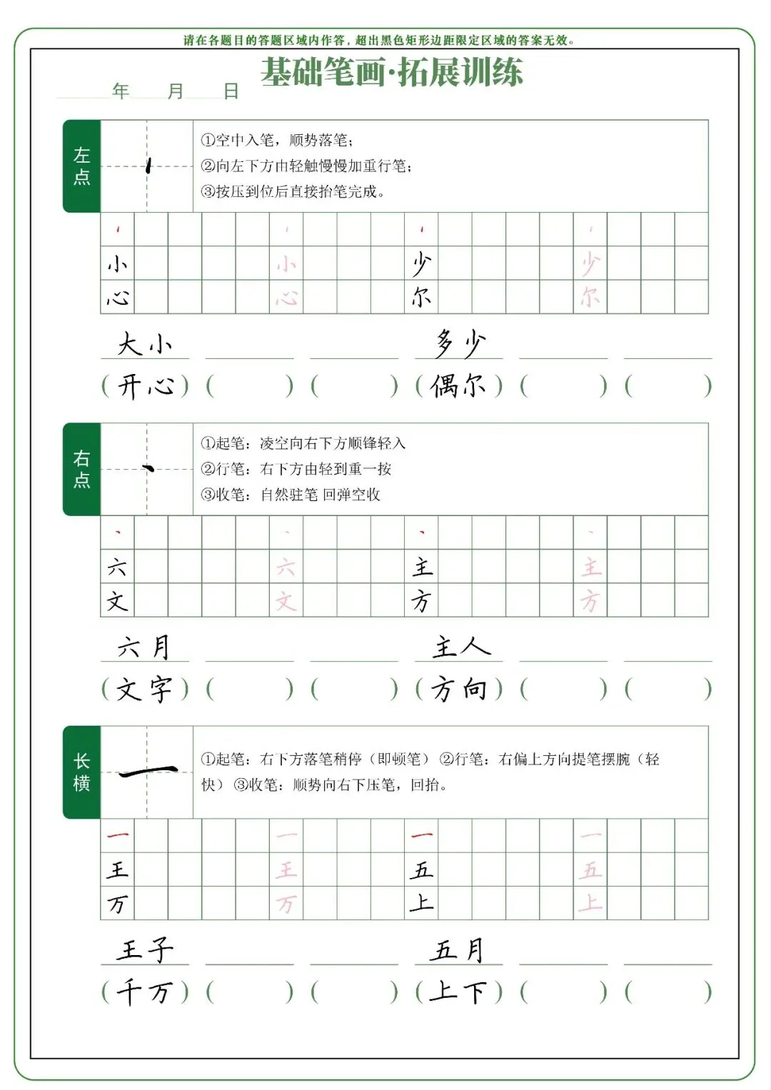 横平竖直略上扬,撇捺干脆不夸张。点钩短小要利落,不描不连卷面强。