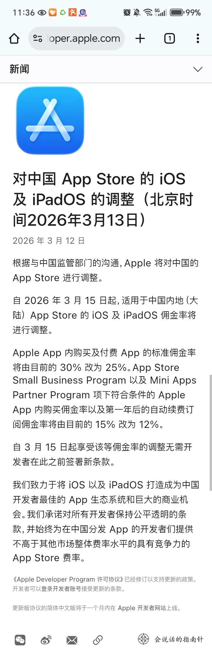 3月12日,苹果官方正式官宣一则重磅消息:自2026年3月15日起,下调中国内地App Store的佣金费率,标准佣金率从30%降至25%,小型企业及自动续费订阅的佣金率从15%降至12%。据测算,这一调整每年可为中国开发者减负超60亿元,堪称中国开发者的“及时雨”。