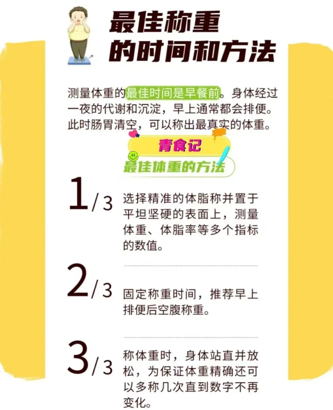 ✅ 时间:晨起空腹、上完厕所、轻衣
