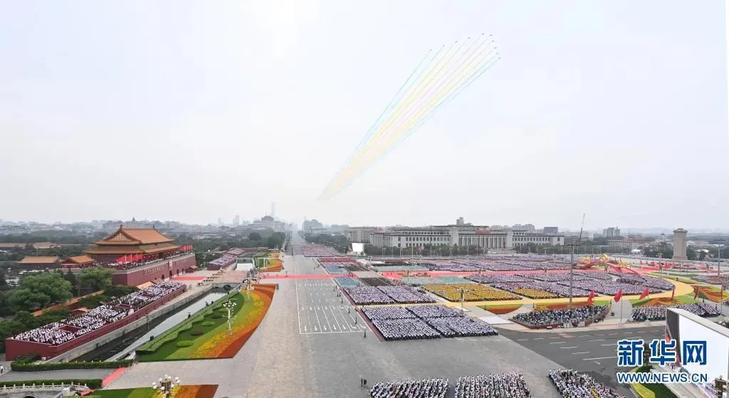 大鹏一日同风起,扶摇直上九万里。回首过去,中国共产党向人民、向历史交出了一份优异的答卷,在中华民族发展史和人类社会进步史上书写了壮丽篇章。展望未来,向着第二个百年奋斗目标进军,更光荣的使命等待我们去担当,更伟大的奇迹等待我们去创造。全党全国各族人民更加紧密地团结在以习近平同志为核心的党中央周围,乘势而上开山河,风雨无阻向前进,就没有任何困难能够难倒我们,就没有任何力量能够阻挡中华民族实现伟大复兴的铿锵步伐!