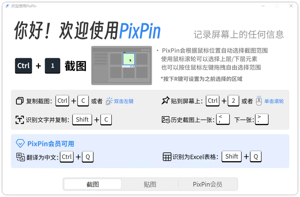 小贴士:默认截图快捷键Ctrl+1、贴图快捷键Ctrl+2,也能按需自定义,顺手度直接拉满~