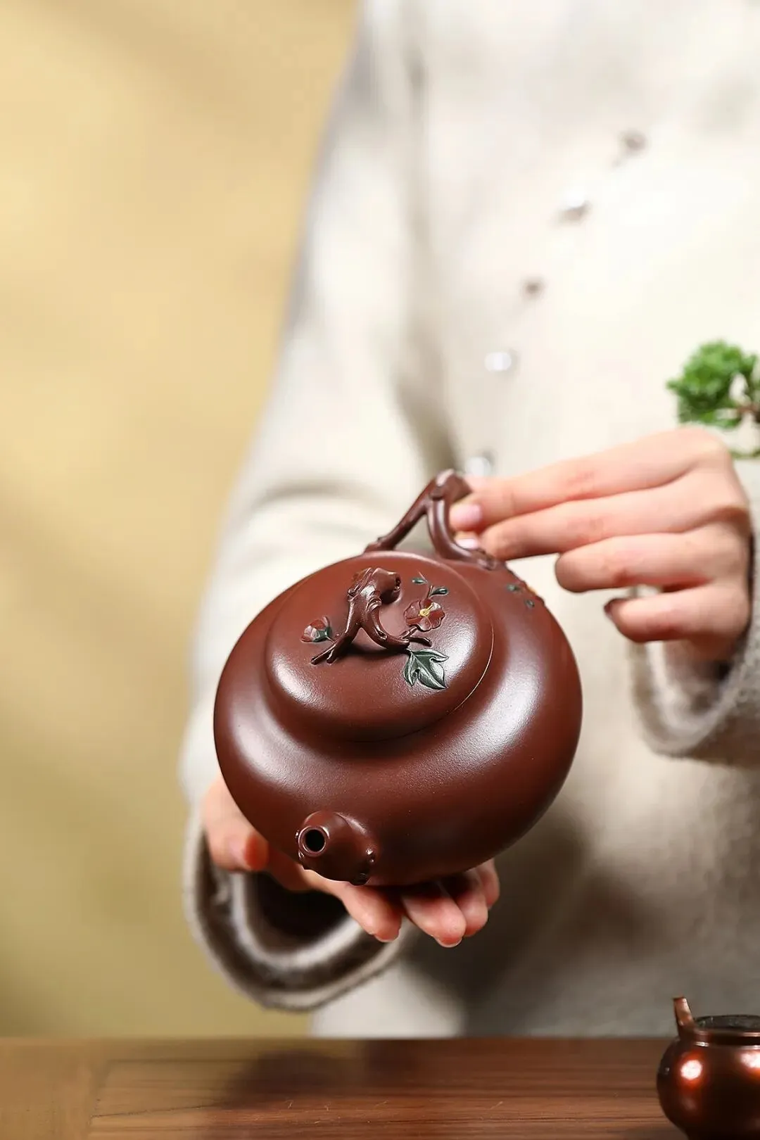 1. 正统稀缺性:作为花器泰斗蒋蓉唯一嫡传后人、蒋氏花器非遗技艺正统传承人,一脉相承的家学底蕴与非遗技艺在紫砂界独树一帜,藏品的传承属性与稀缺属性兼具,大国工匠的手作臻品更显难得。