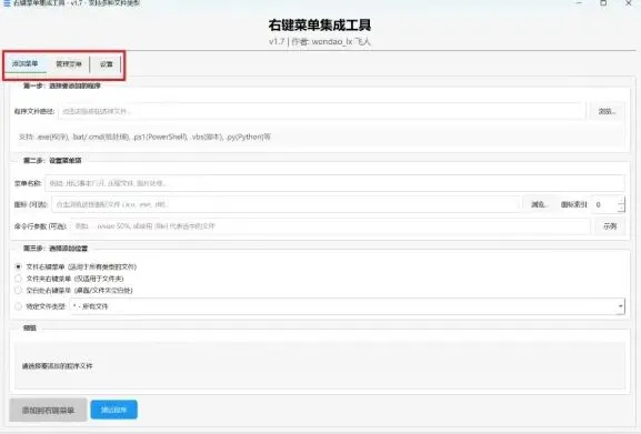 整体功能有点类似 火绒里的右键菜单管理,不过这个工具更偏向于自己添加常用程序。