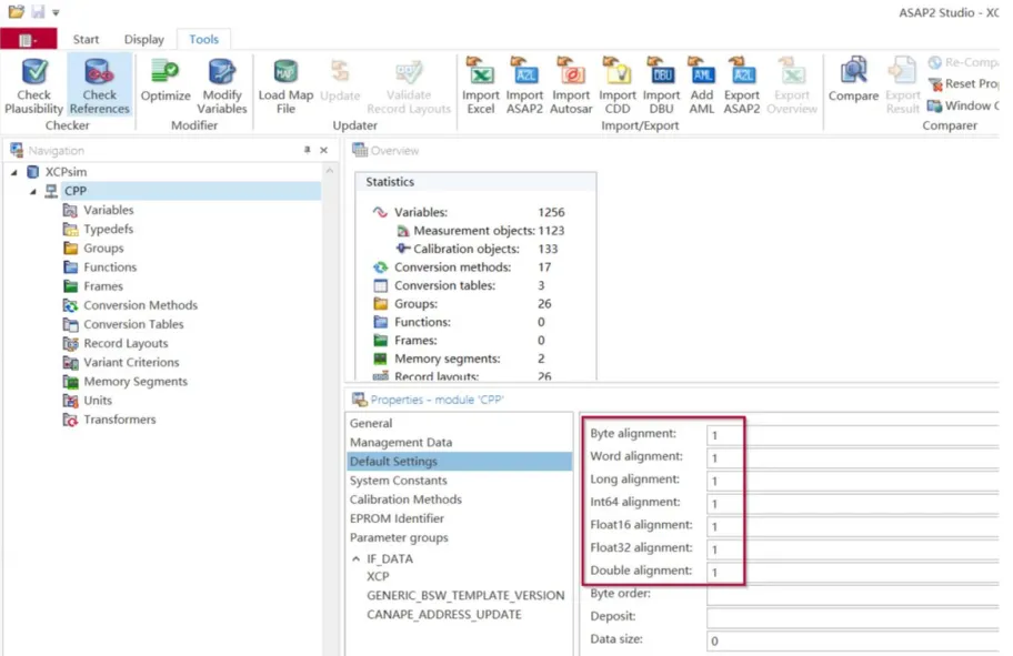 CANape 19以下版本:地址对齐统一设为1。