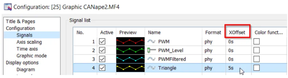 设置完成后,信号名称会出现时间偏移标记,方便识别。