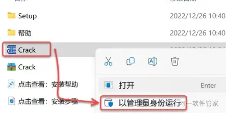 鼠标右击 Crack,选择 解压到当前文件夹。如果安装包里没有 Crack 文件,关闭杀毒软件后重新解压安装包。