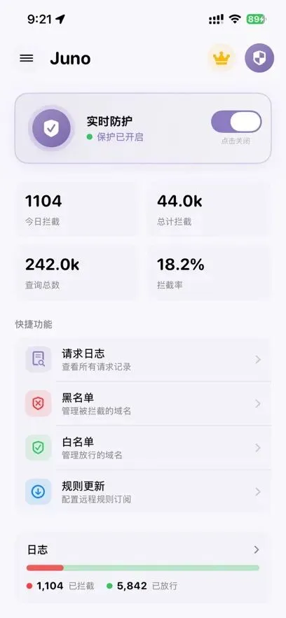 软件介绍:Juno 是一款专为 iOS 设计的极简广告过滤工具。我们不只是拦截广告,更是在重塑您的上网体验。深度拦截:强力过滤网页横幅、悬浮窗、插屏广告及视频前置广告。让内容回归主角,让视线不再被遮挡。隐私屏障:自动识别并阻断数千种跨站追踪脚本。您的浏览习惯、点击行为和个人数据不应成为广告商的商品。App弹射起步:通过跳过臃肿的广告素材加载,App打开速度提升可达 2-3 倍,同时大幅节省移动流量。续航与性能优化:Juno 坚持本地过滤逻辑,不常驻后台,不参与云端解析。这意味着更低的 CPU 占用和更持久的电池续航。Liquid Glass 美学:深度适配 iOS 最新设计规范。半透明材质、流动的视觉效果与细腻的物理触感反馈,让每一次操作都赏心悦目。
