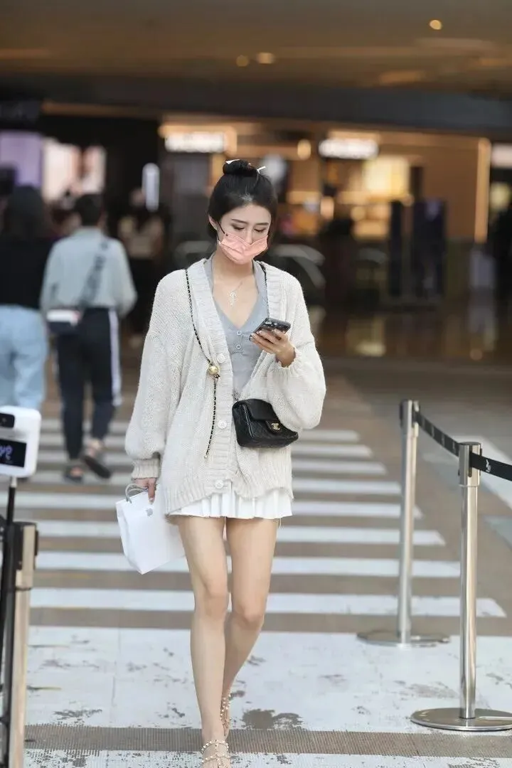 平时外出逛街、喝下午茶时,温柔风穿搭是最受人们喜欢的。米白色宽松针织开衫加白色短款百褶裙叠穿起来又甜又俏皮。黑色迷你马鞍包斜挎于身,低调又型。粗跟凉鞋的金属链条装饰很抢眼,在行走时稳重大方又显气质。这身打扮像捧了一杯热奶茶一样温暖治愈。