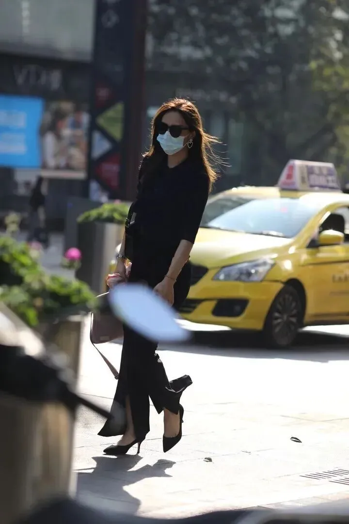 职场女强人靠干练的搭配来加强自己的气场。藏蓝色套装十分利落,半袖翻领上衣加高腰阔腿裤,挺拔有精神。黑色尖头细高跟增加自信,浅棕色手提袋实用又有味道。该件衣服使会议工作都有范儿。