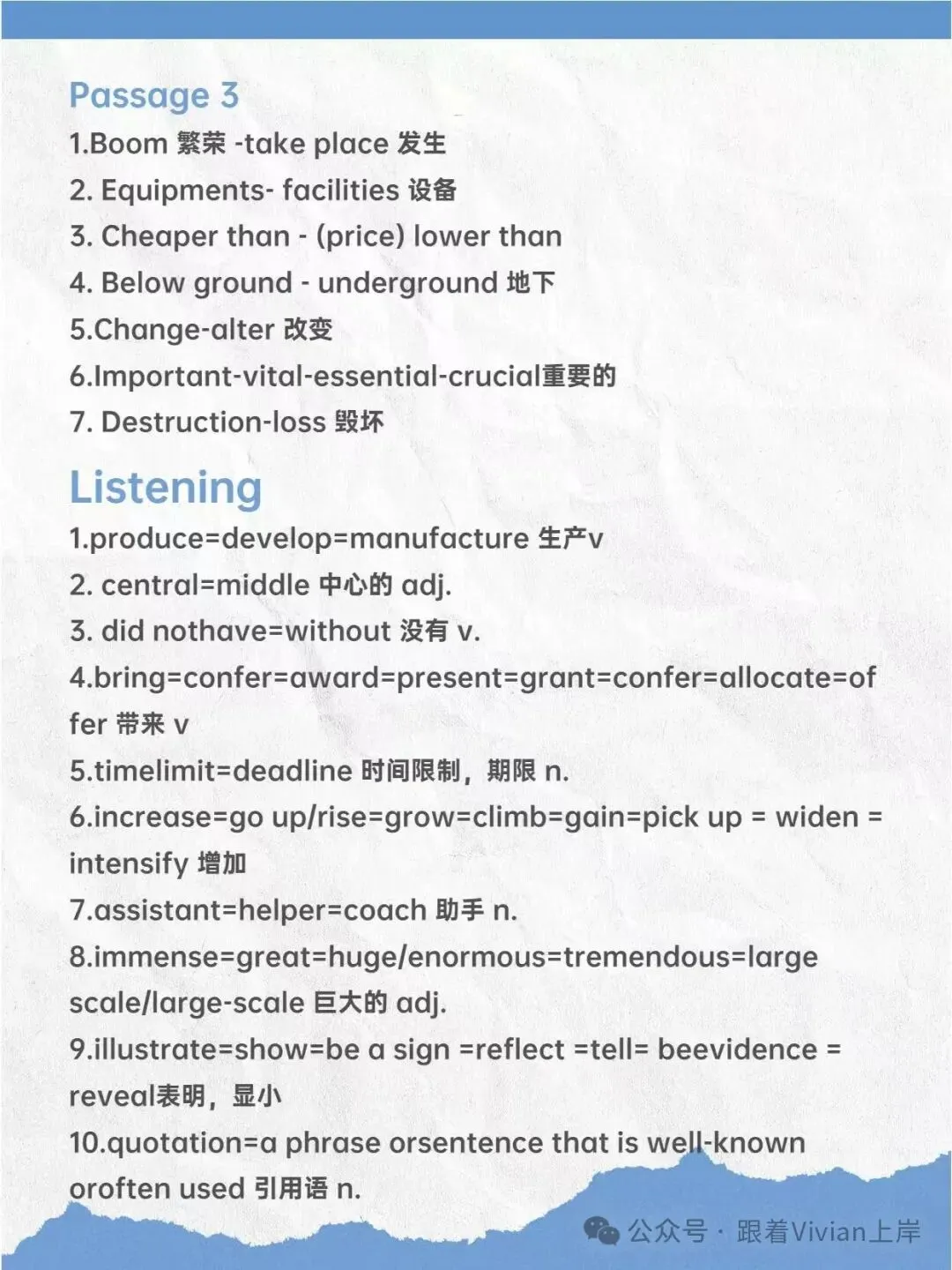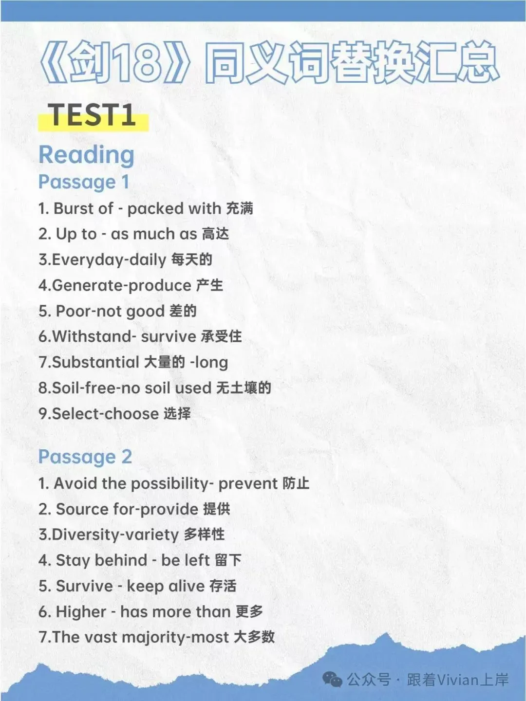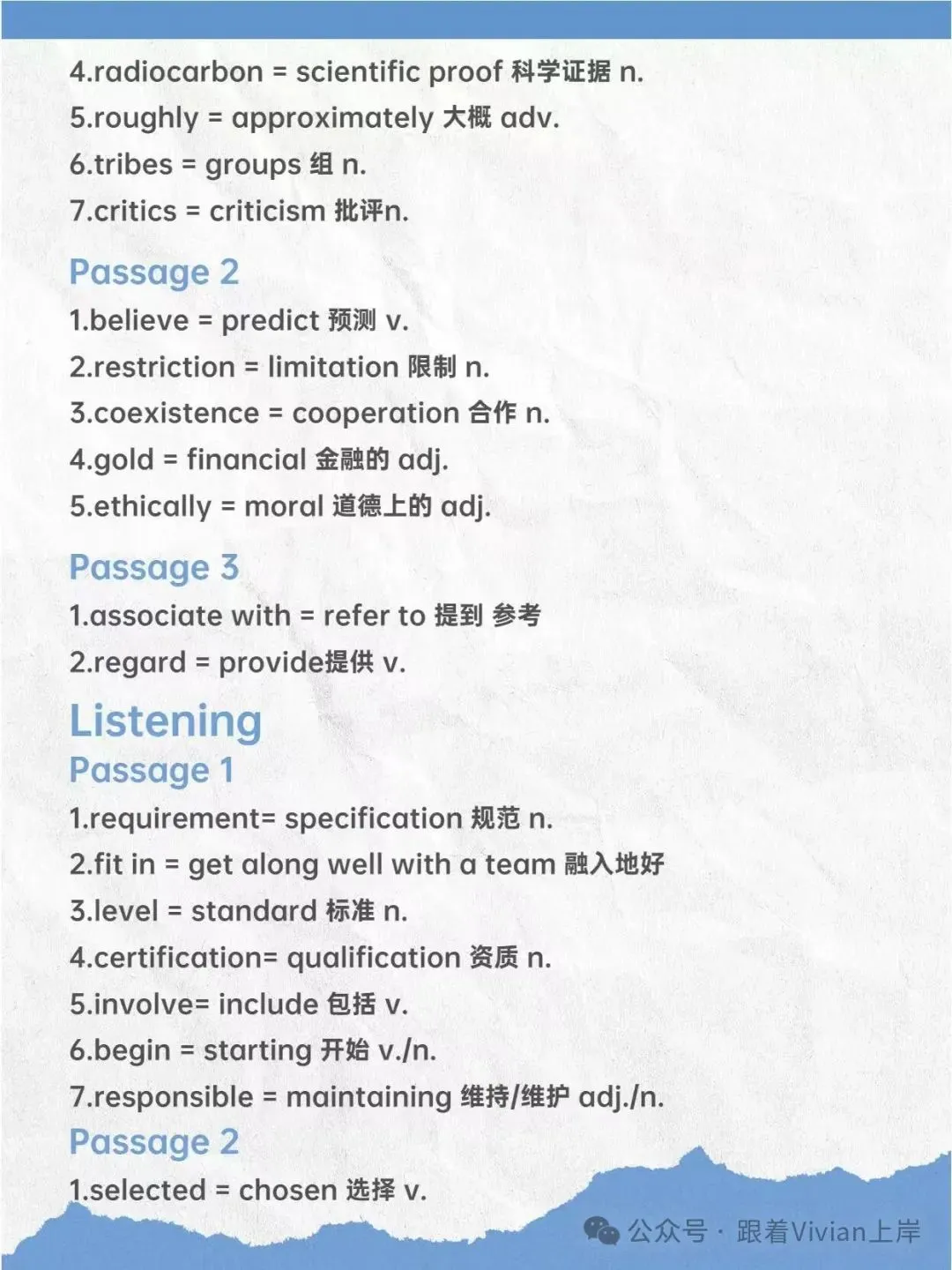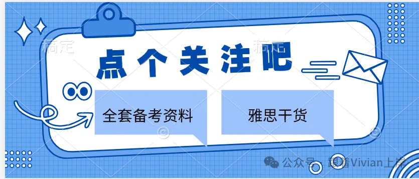 关注(跟着Vivian上岸),后台回复:雅思