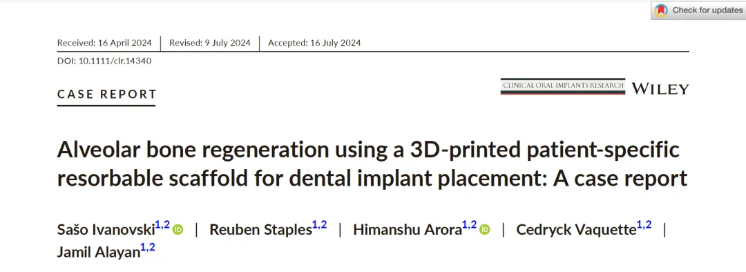 本文献聚焦3D打印可吸收支架技术在牙种植骨再生中的应用,为临床前牙美学区修复提供参考。