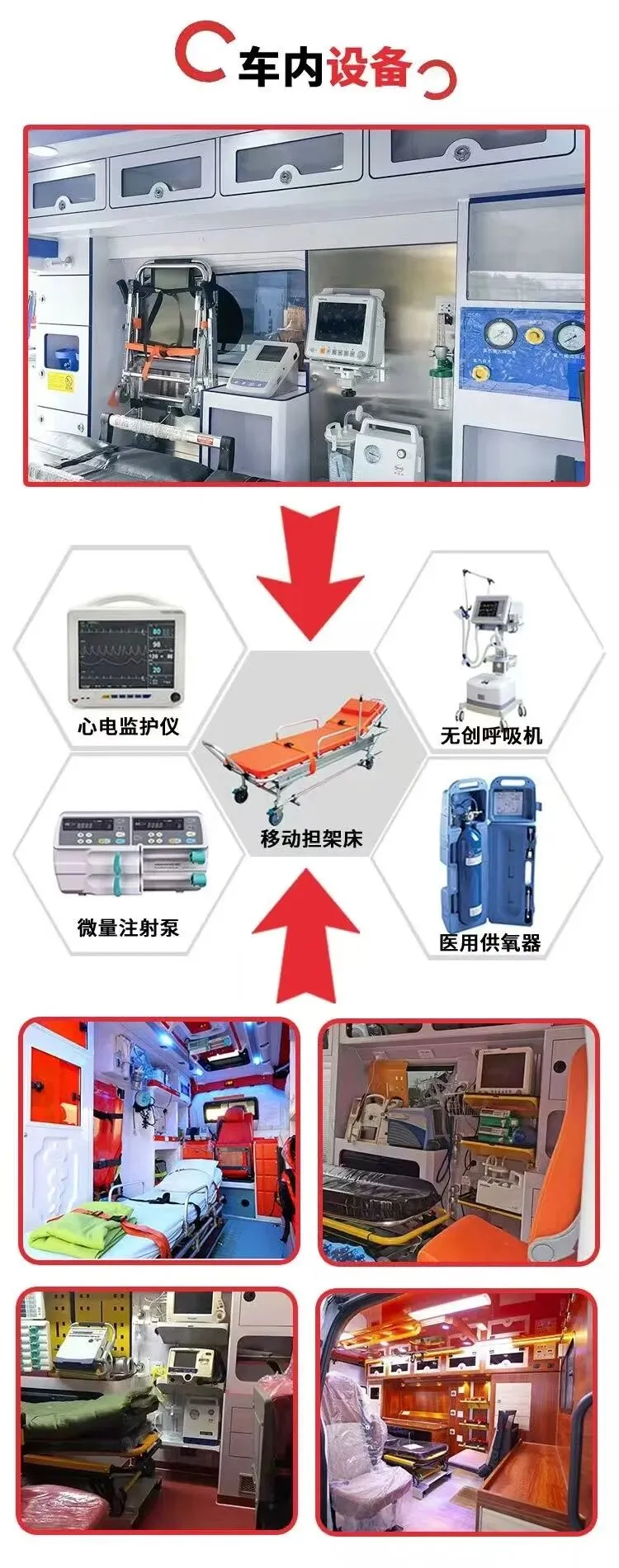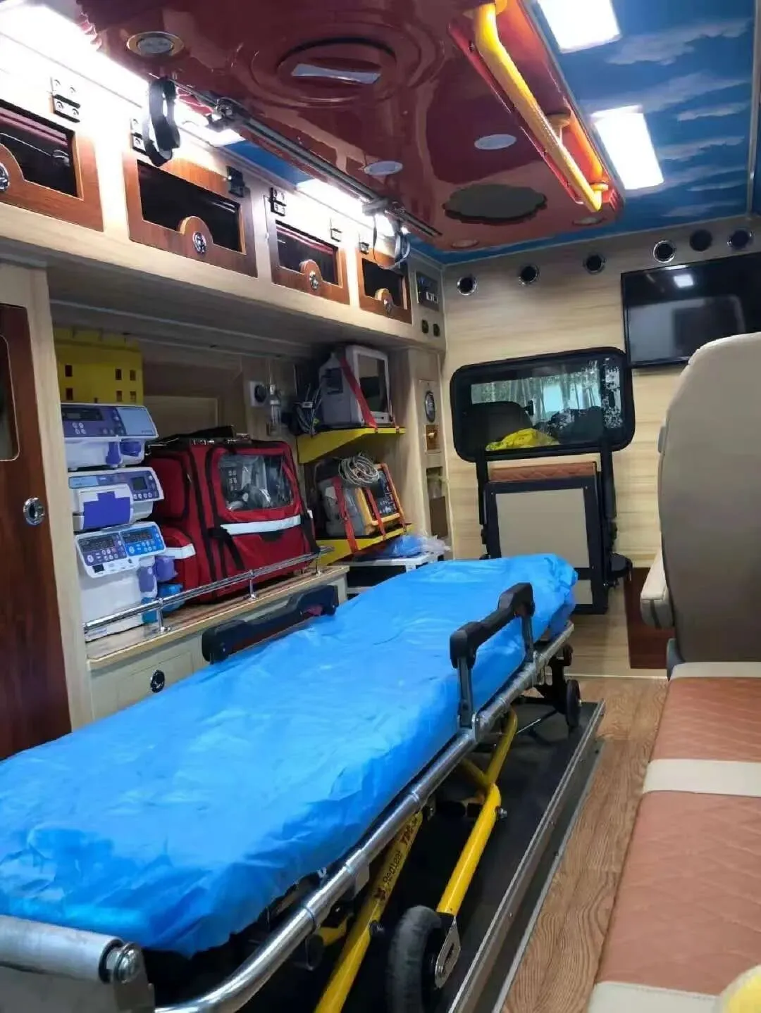多功能救护车配备呼吸机心电监护仪全程监护除颤仪等急救设备齐全