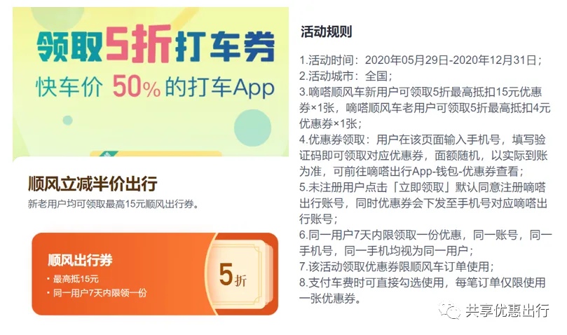 3.2、嘀嗒打车5折券