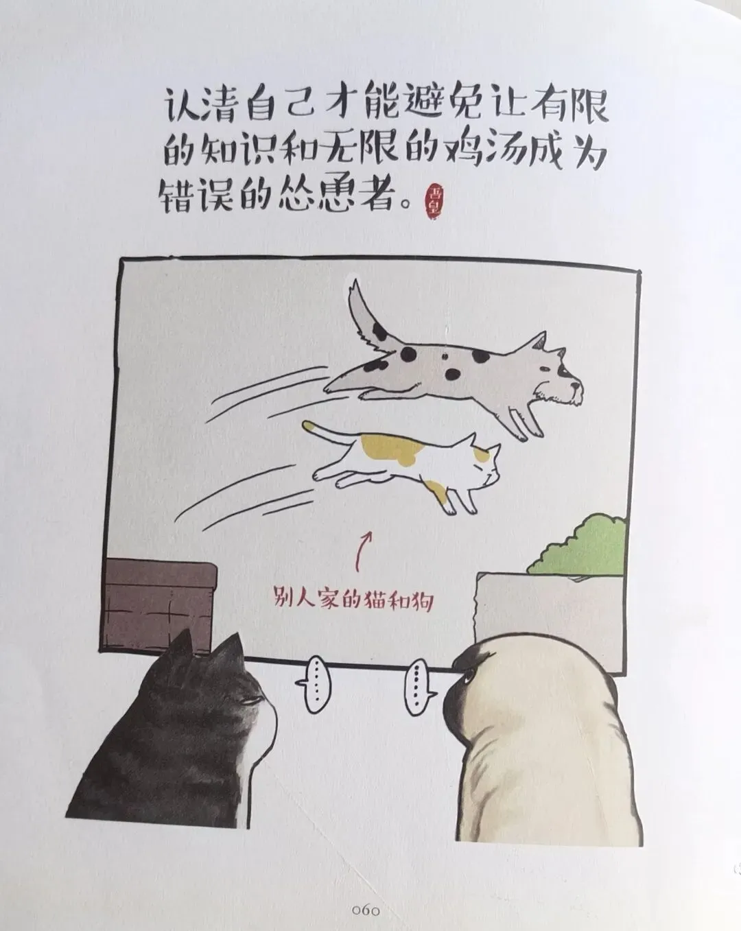 很少有人不喜欢小动物,像这样在和猫狗的搞笑日常的图画中,输出自己的人生观,与读者交流,这是一件多么惬意的事情。