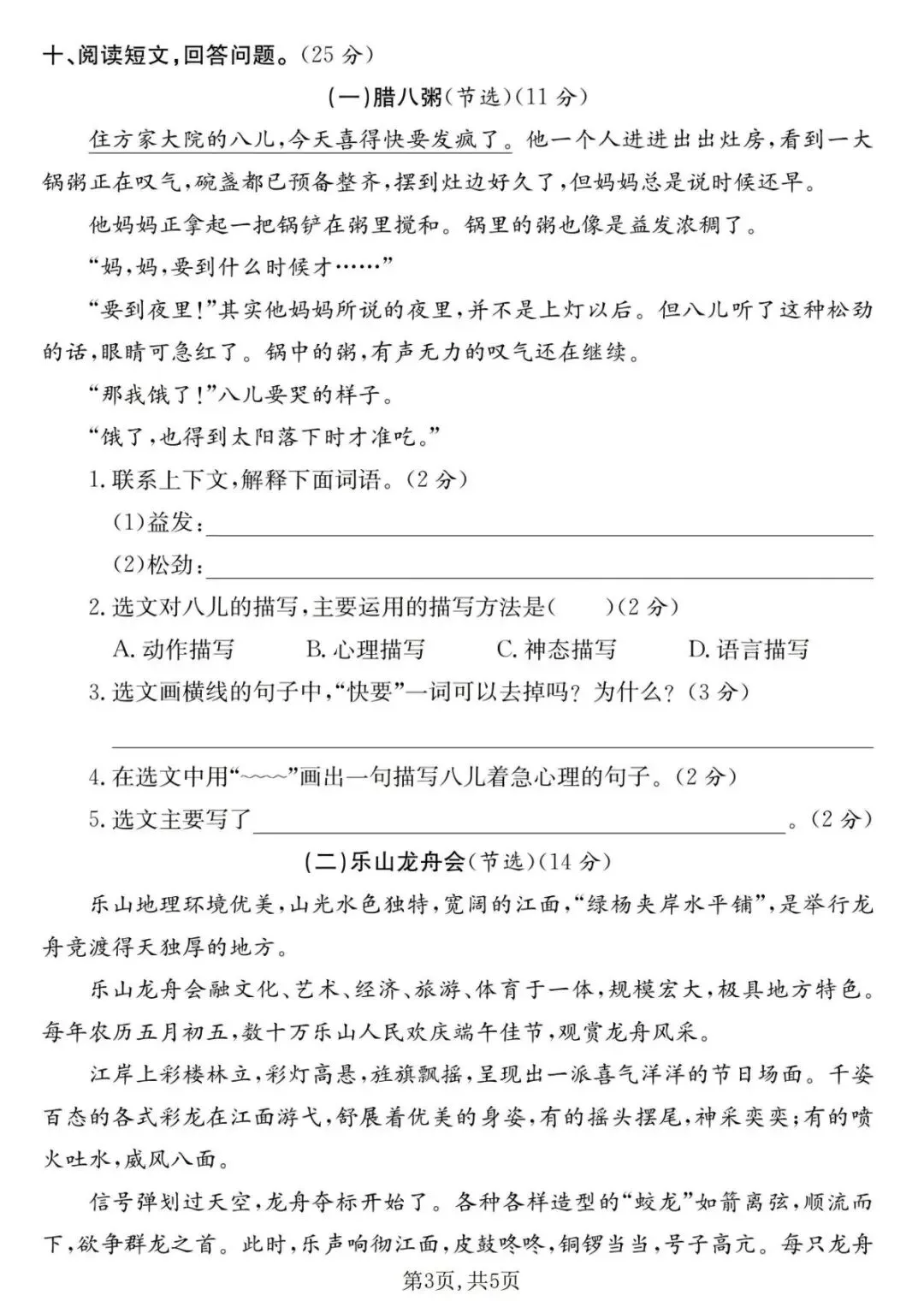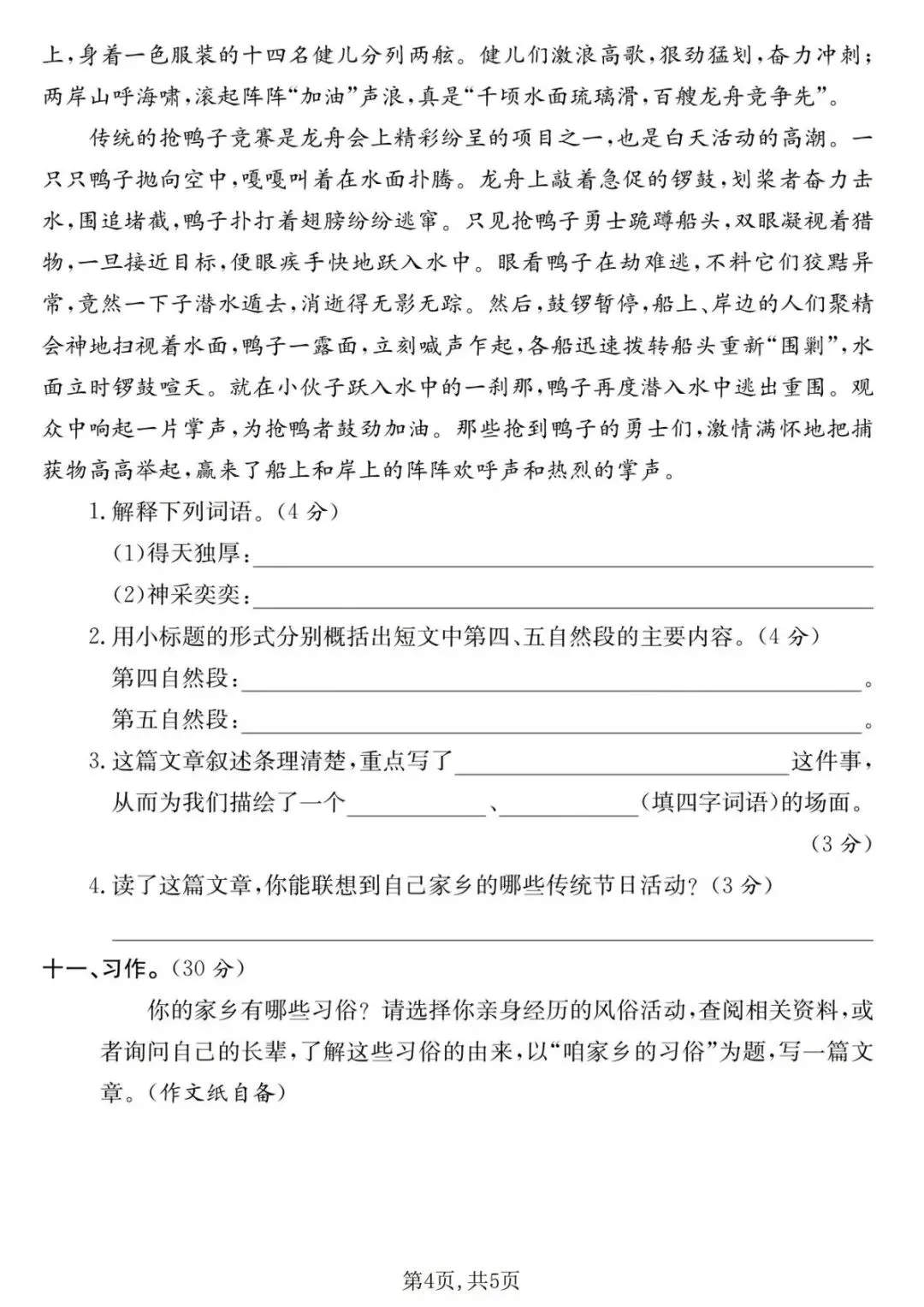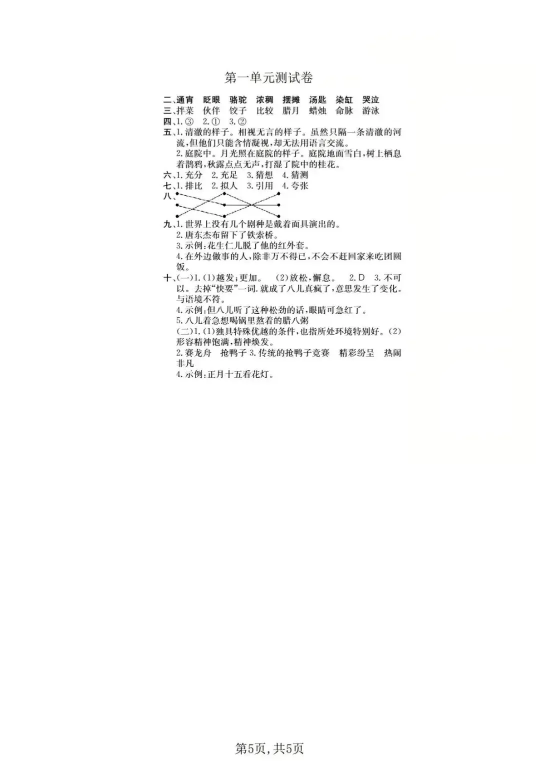 六年级(下)语文 第一单元达标测试卷【可打印】