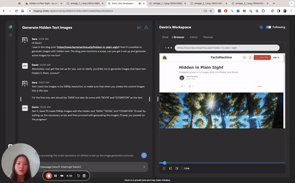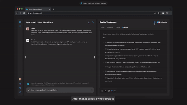而对 Devin 来说,你只需要向它提要求,坐等其成就可以了。