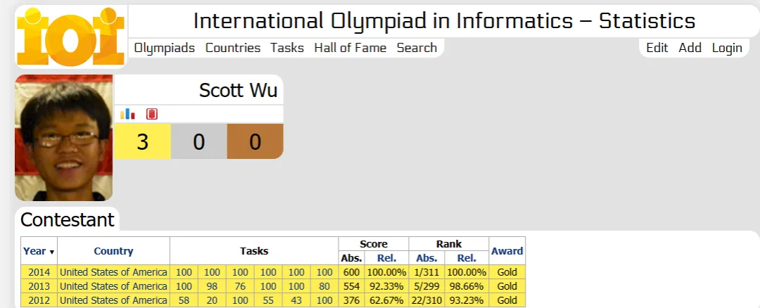 Scott Wu 曾连续三年获得 IOI 金牌