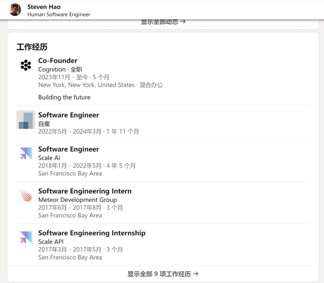 Walden Yan – 首席产品官 (CPO):Walden 直到最近还在哈佛大学上学,他请求将他在学校的状态留作模糊,大概率是想「辍学创业」。