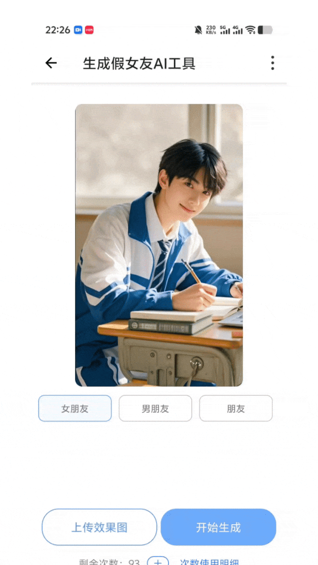 比如,我想为这位男生生成一张女友合影