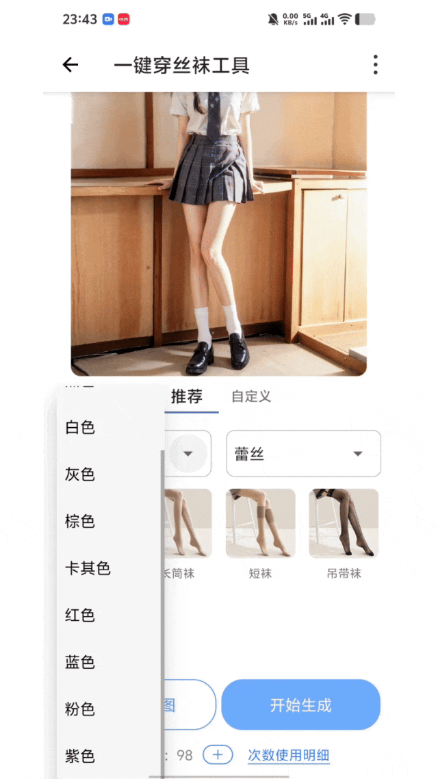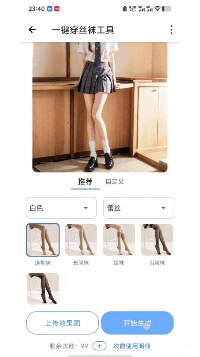 点击生成后,AI就会自动识别腿部区域