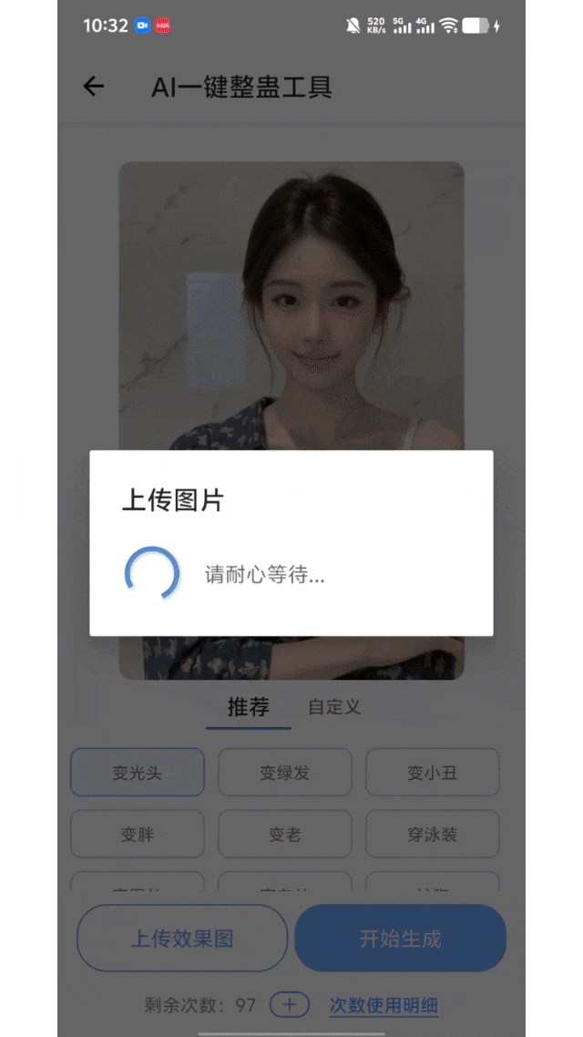 点击开始使用,上传图片后点击生成