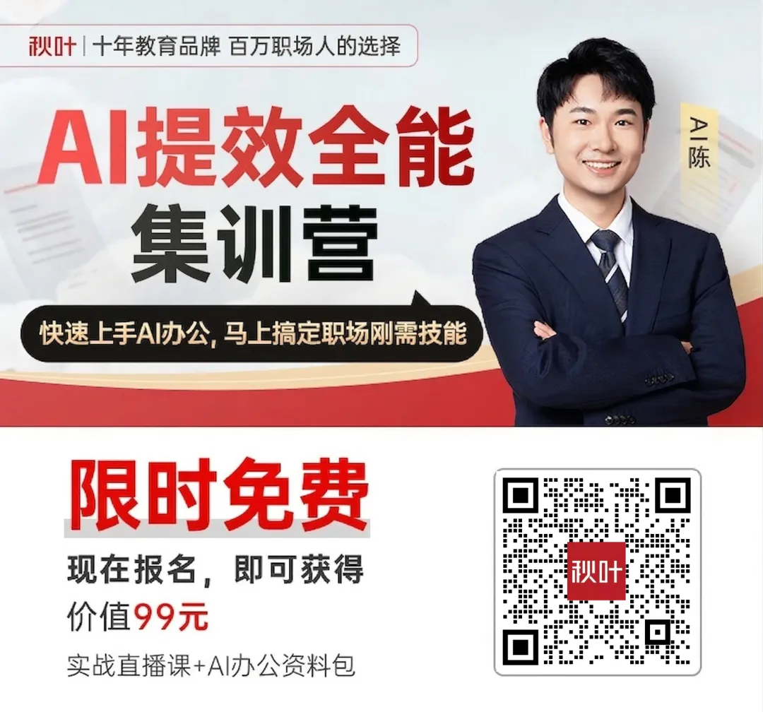 如果你也想系统性地提升这种能力,不再让强大的工具沦为摆设,强烈推荐你加入我们的《秋叶 AI 提效全能集训营》。