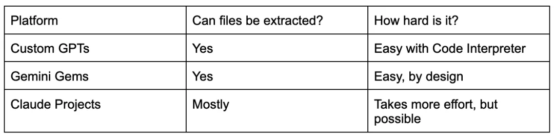 这点常令用户惊讶:若他人能使用你的定制AI助手,他们很可能下载你上传的文件。不仅如此,连你的定制指令(定义助手行为的系统提示)也可能被提取。