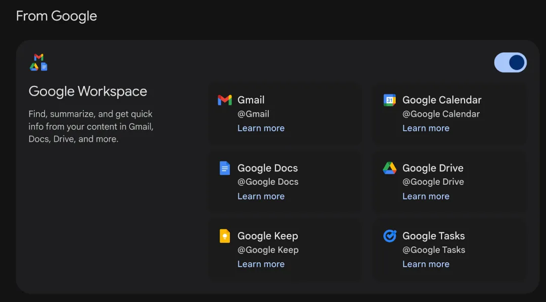 Gemini原生工作区扩展——Gmail、云端硬盘、文档、日历、Keep和任务