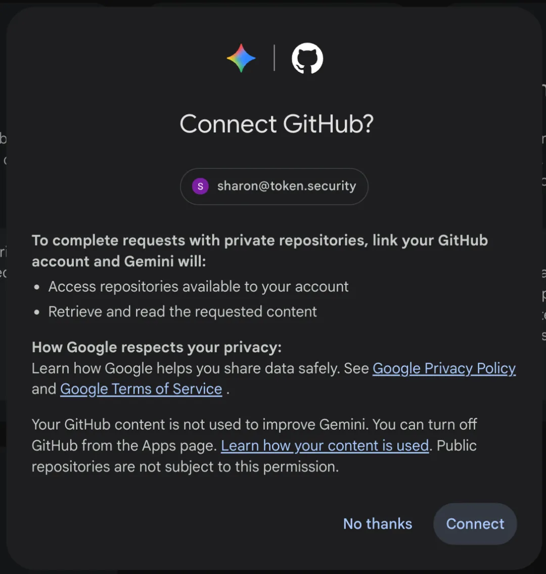 连接 GitHub 时,Gemini 将请求访问您的代码仓库