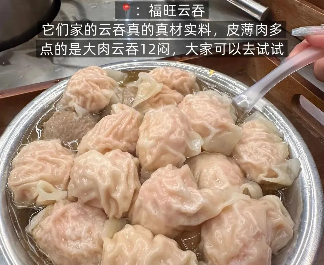 人均 8-12 元,性价比拉满!平西夜市总店主打夜市 + 宵夜(傍晚出摊到凌晨),中尧路等分店还有日间时段,堂食打包都方便。福旺云吞本是钦州浦北福旺镇的传统风味,如今在南宁成了家喻户晓的夜市小吃;秋冬吃热乎的暖心暖胃,夏天吹着晚风嗦一碗,清爽不腻。
