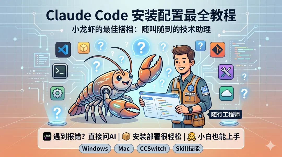 这篇教程会从零开始,手把手带你完成 Claude Code 的安装与配置,让你在正式踏入小龙虾的世界之前,先拥有一个真正能帮你解决问题的 AI 助手。