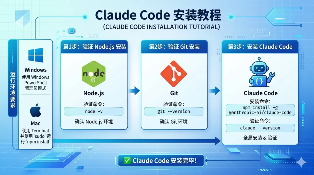 部署 Claude Code 需要两个基础环境,就像盖房子先要地基一样,缺一不可: