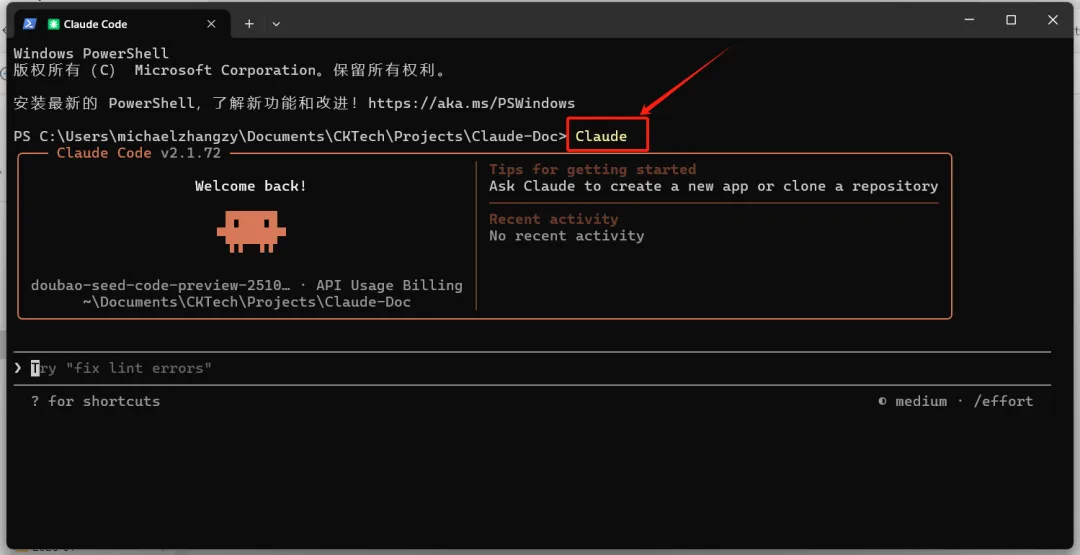 第一种:直接打开Powershell并以管理员身份运行后输入「Claude」