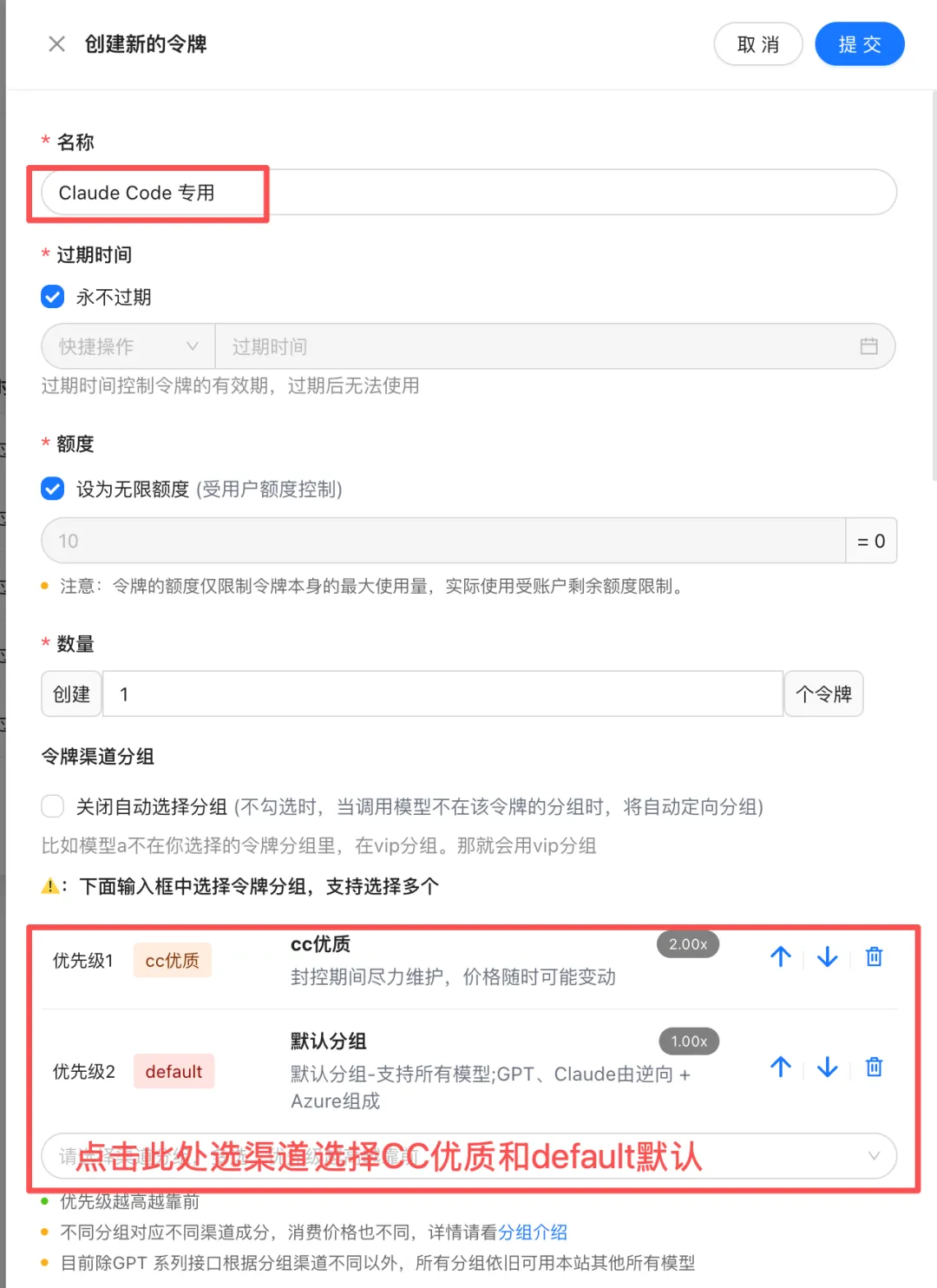- 3.新令牌写上名称和设置渠道,记录下平台的接口地址和你的令牌