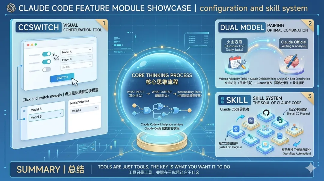 - 【核心思维】 想清楚「输入什么 → 输出什么 → 中间经过哪些步骤」,Claude Code 就能帮你实现