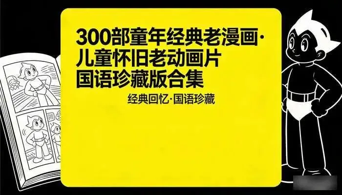 今天带来的这个宝藏合集,就是为你准备的“时光机”——300部童年经典老漫画 & 儿童怀旧老动画片国语珍藏版。这里面装着的,可都是我们这一代人共同的记忆。